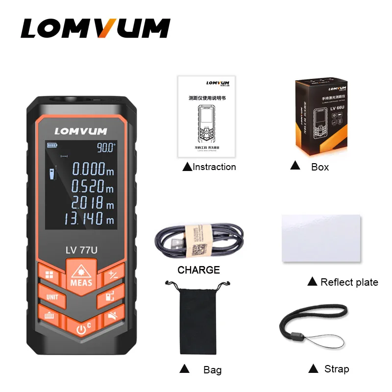 LOMVUM LV 77U Лазерный дальномер цифровой с аккумулятором, 77U Lomvum 40, 50,60,80,100 метров, с юсб зарядкой фабричная сборка