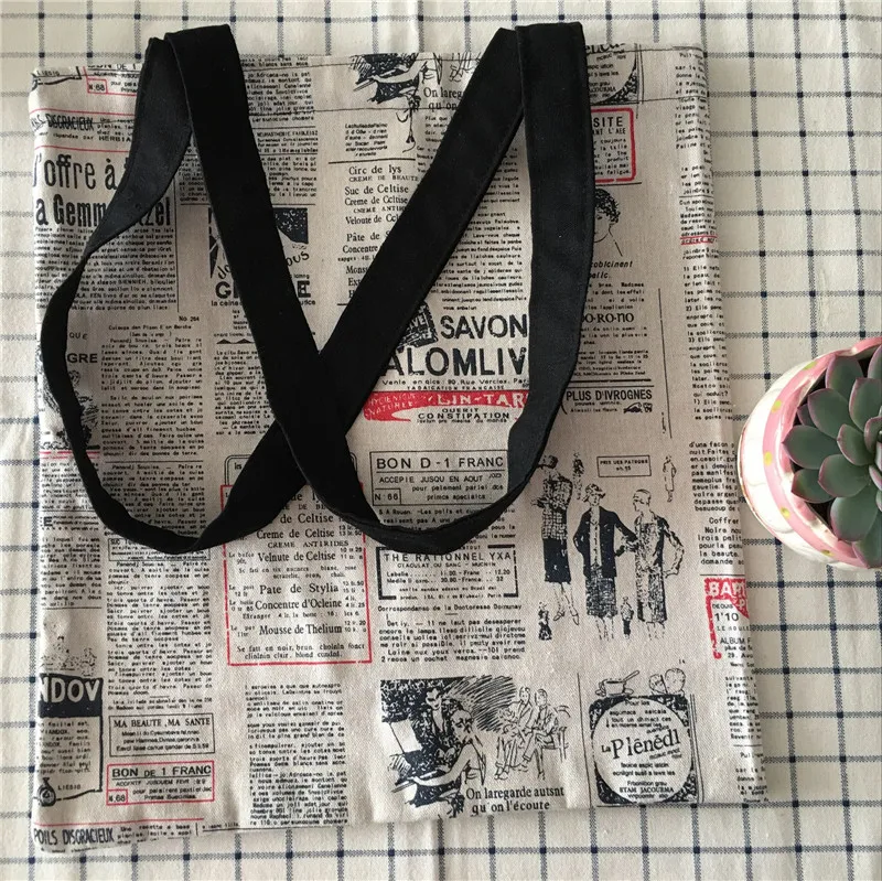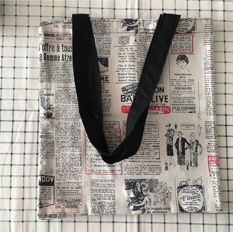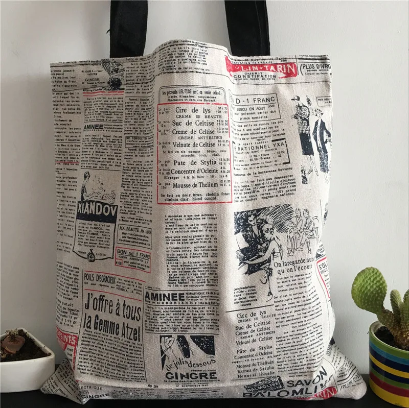 Эко-торговая сумка YILE из хлопка и льна, сумка-тоут через плечо с принтом, газета 8417d