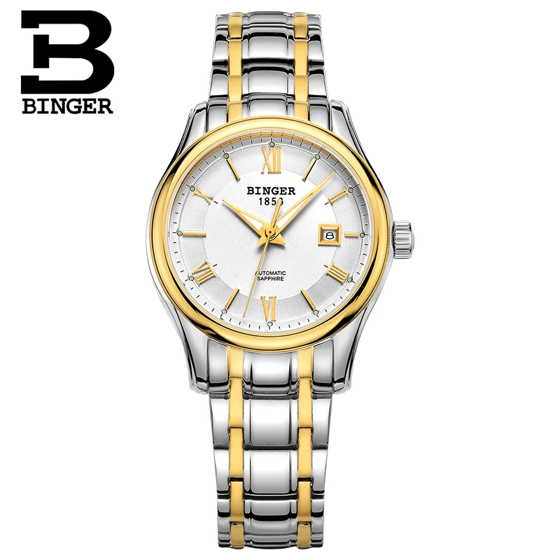 Женские наручные часы BINGER, роскошные брендовые механические часы из нержавеющей стали с сапфиром, часы для женщин, новинка, Швейцарский стиль, часы для женщин, часы для мужчин, часы для женщин с сапфиром