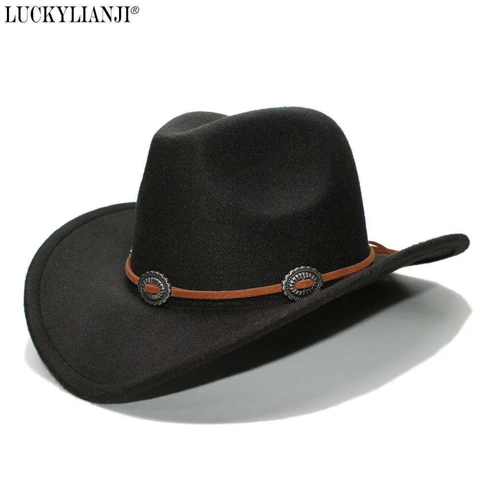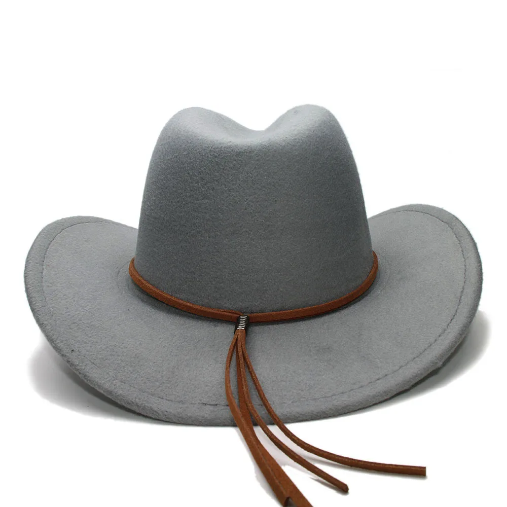 LUCKYLIANJI Женская Мужская винтажная шерстяная фетровая ковбойская шляпа унисекс Бирюзовая оплетка ремешок (57 см)