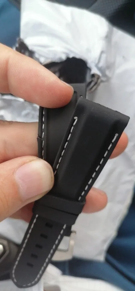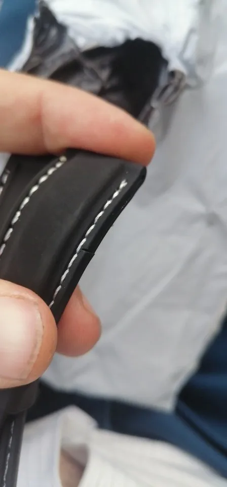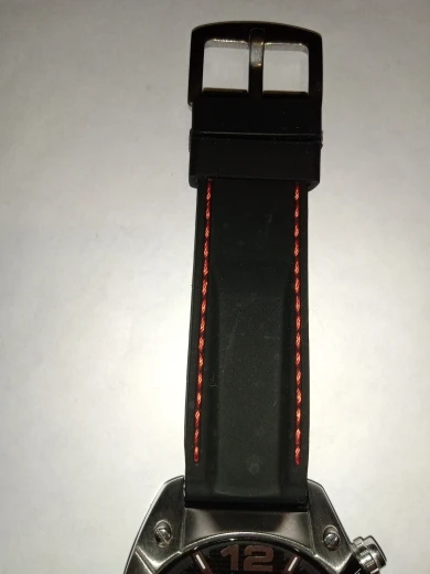 Ремешок изготовлен не очень аккуратно- по краям не обрезаны остатки материала после литья, прошит тоже не очень аккуратно, кое-где строчка не ровная. Но учитывая цену с этим можно смириться.