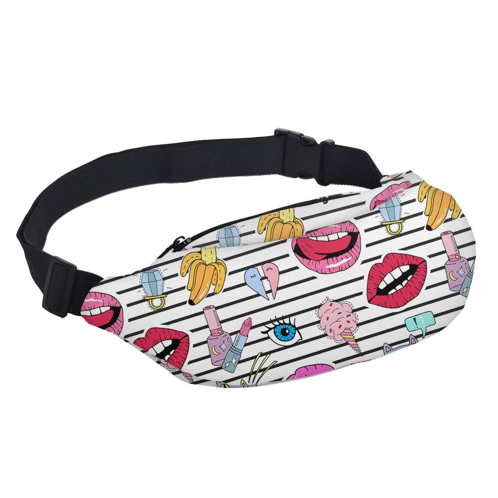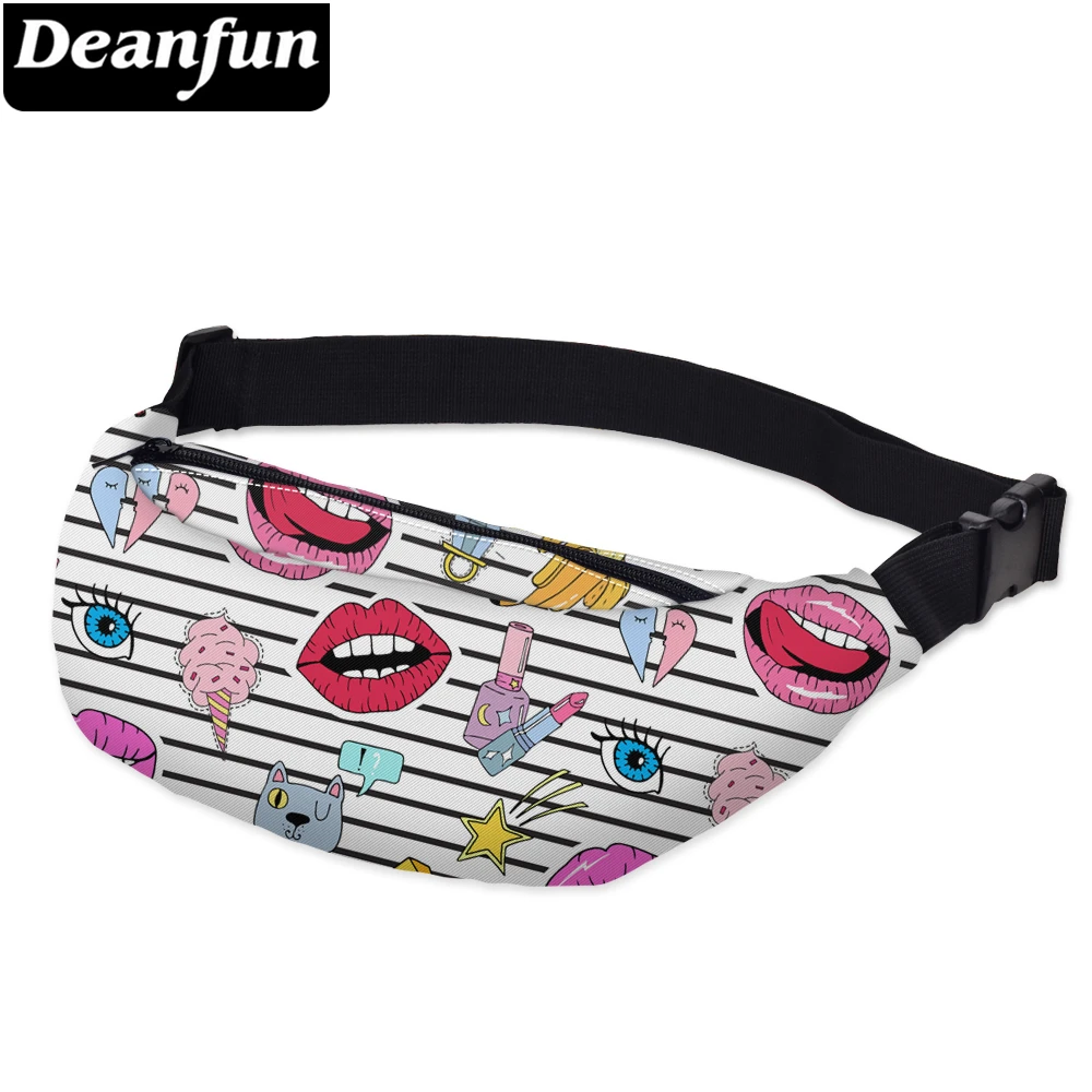 Женские поясные сумки в полоску Deanfun, дорожные сумки с 3D-принтом губ, YB19