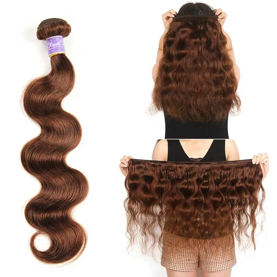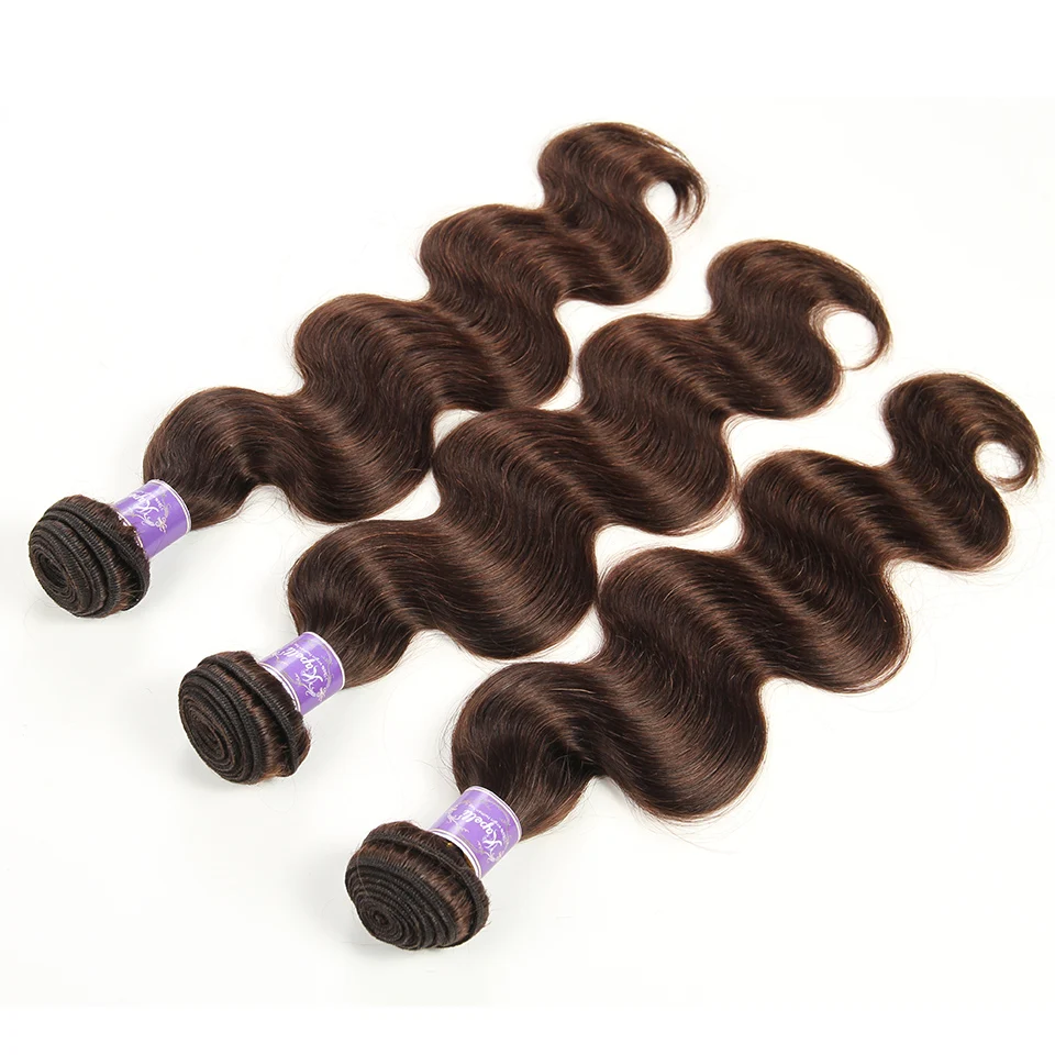 Предварительно окрашенные человеческие волосы, плетеные бразильские волнистые 34 пряди ков #4 #2, цветные коричневые волосы, плетеные волнистые волосы Remy для наращивания