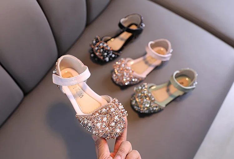 Сандалии для девочек, летние, с жемчугом, со стразами, размеры 21-36