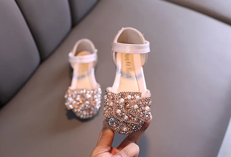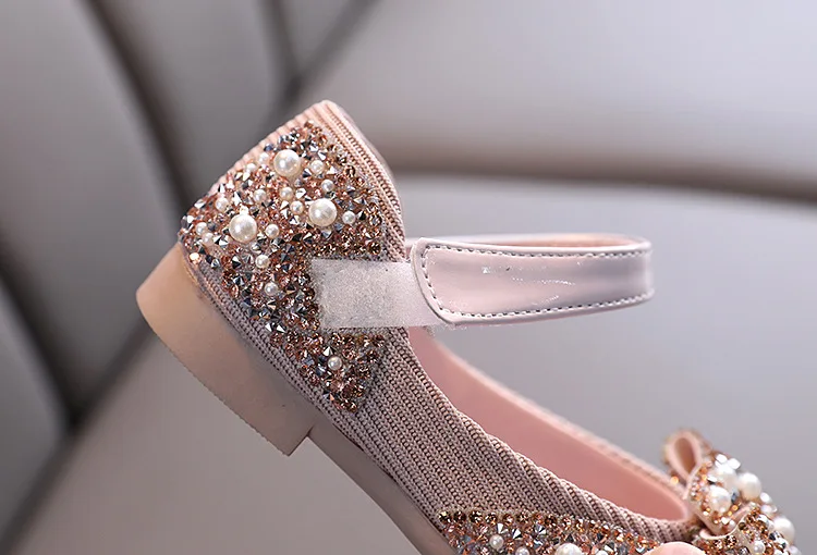 Новые детские туфли Стразы с жемчугом, блестящие детские туфли прин...