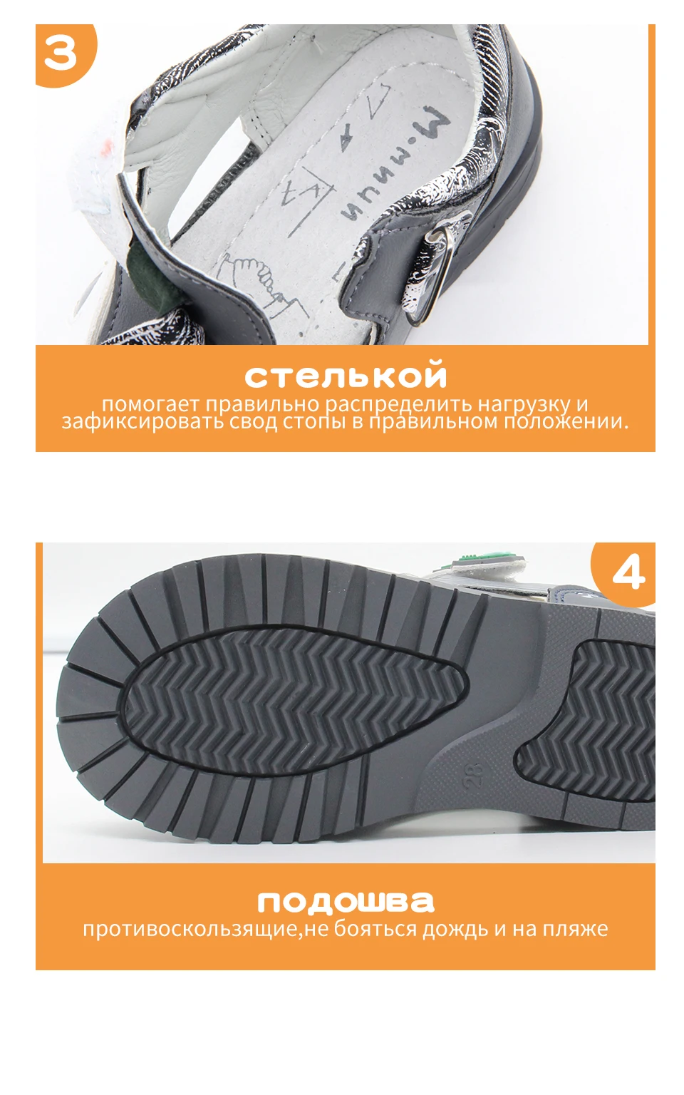 Качественные ортопедические сандалии, как мне показалось, на размер больше заявленных размеров(заказывала 2 пары)
