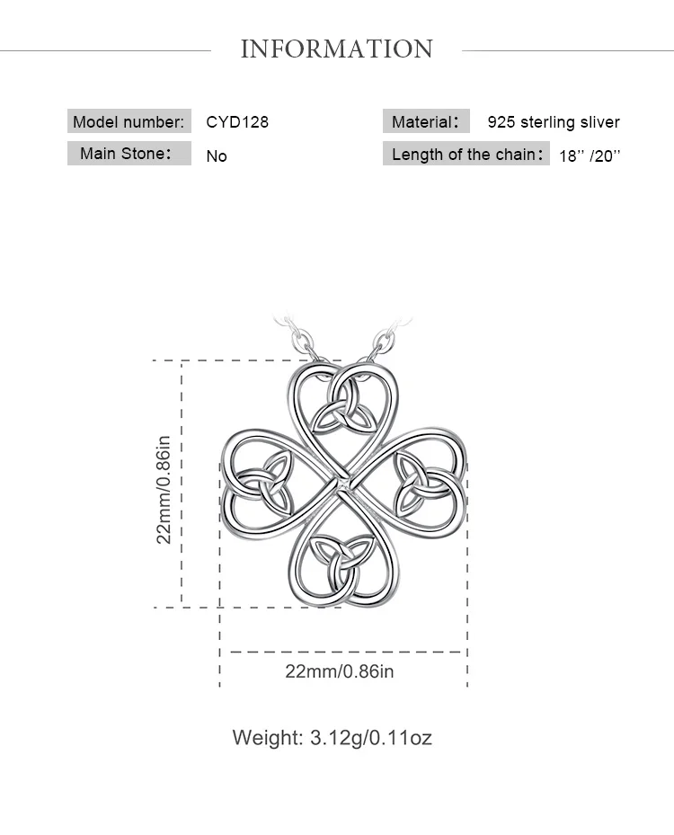 Юдора 925 пробы серебро лепестки нашивкой в виде сердца Celtics узел кулон Цепочки и ожерелья с 18 дюймов Чиан Celtics ювелирных изделий для Для женщин девочек CYD128