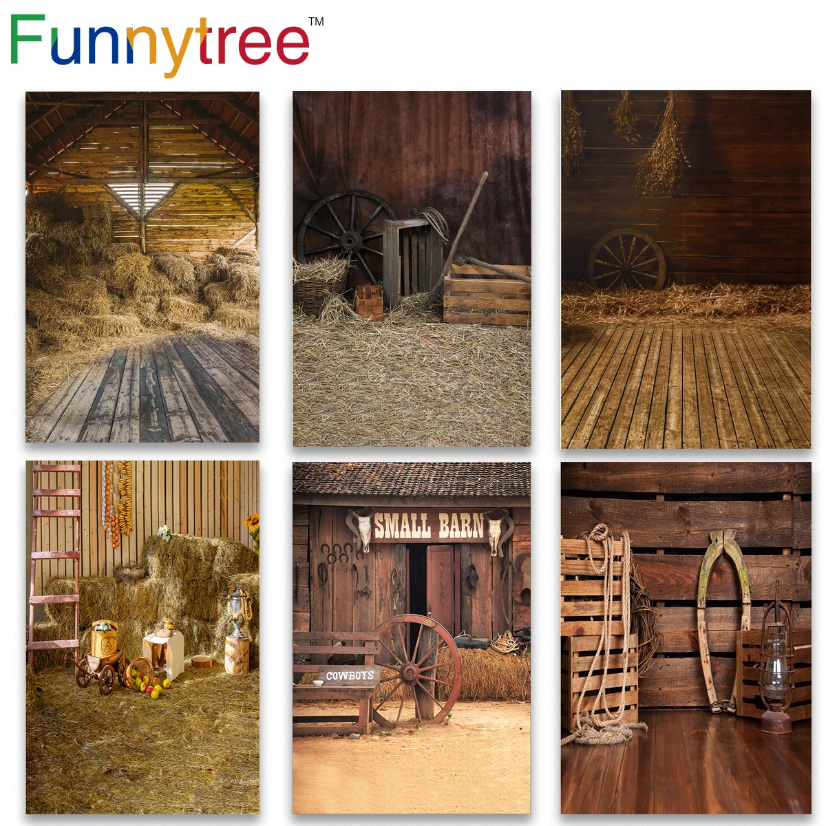 Фон Funnytree для студийной фотосъемки со склада в западном стиле с изображением стога сена сарая деревянный фон для фотосъемки Детская осенняя фотозона