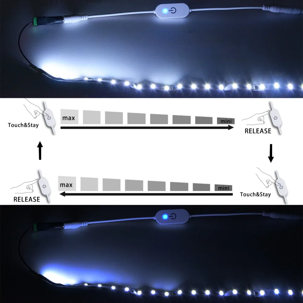 Монолитный блок светодиодов, 12 В, 24 В, 3 А, диммер, сенсорный выключатель, функция памяти яркости с разъемом постоянного тока Мама для управления светодиодной лентой