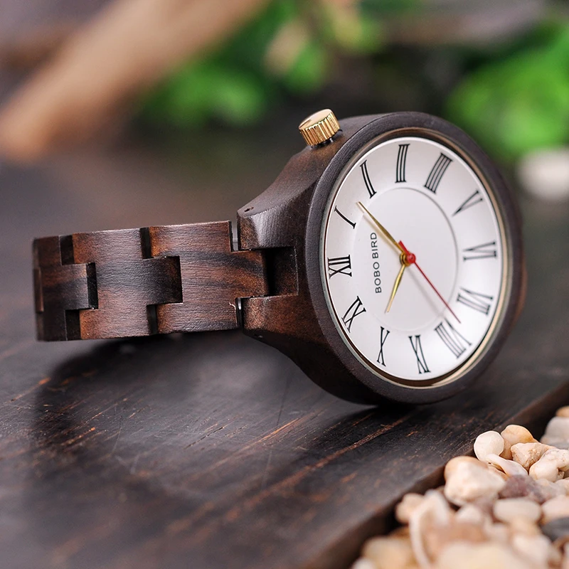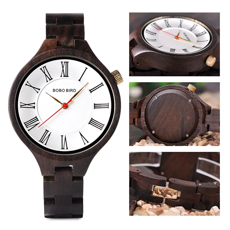 Простые деревянные часы BOBO BIRD Q11 для женщин, классические черные женские кварцевые наручные часы в деревянной коробке