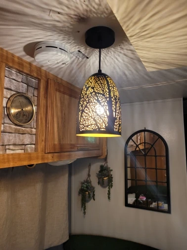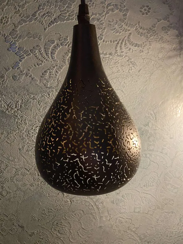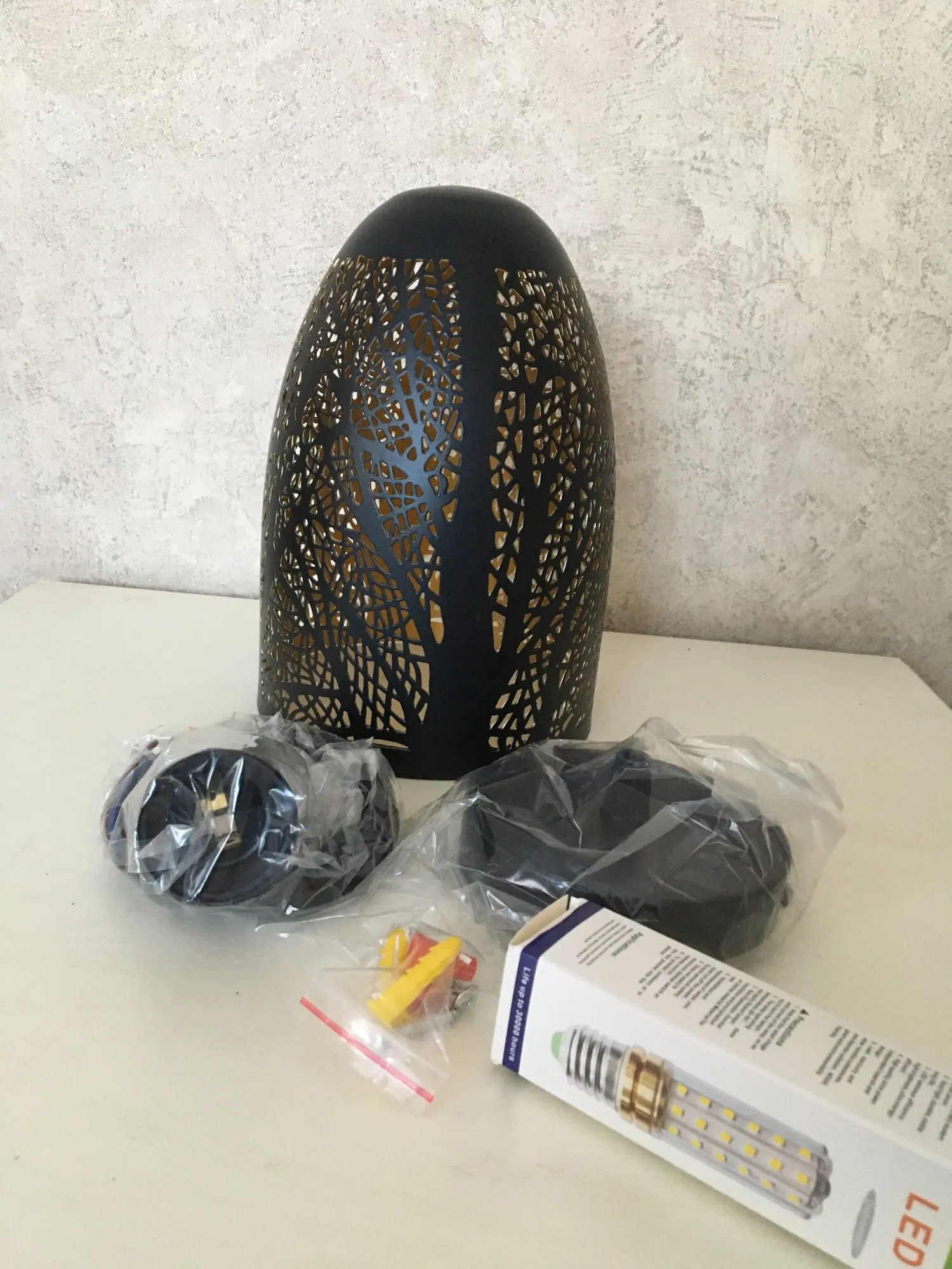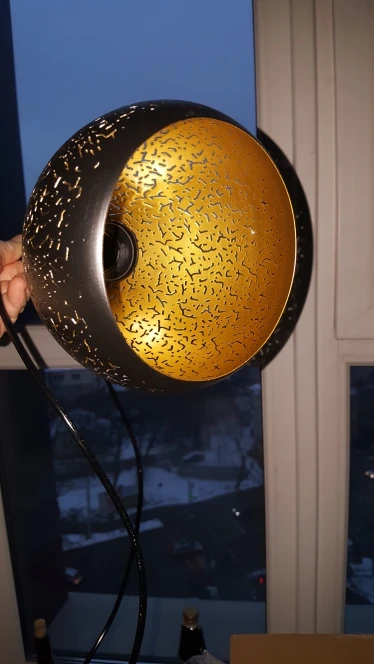 Хороший, красивый светильник. Изнутри золотистый, сверху черный. Упаковано надёжно.