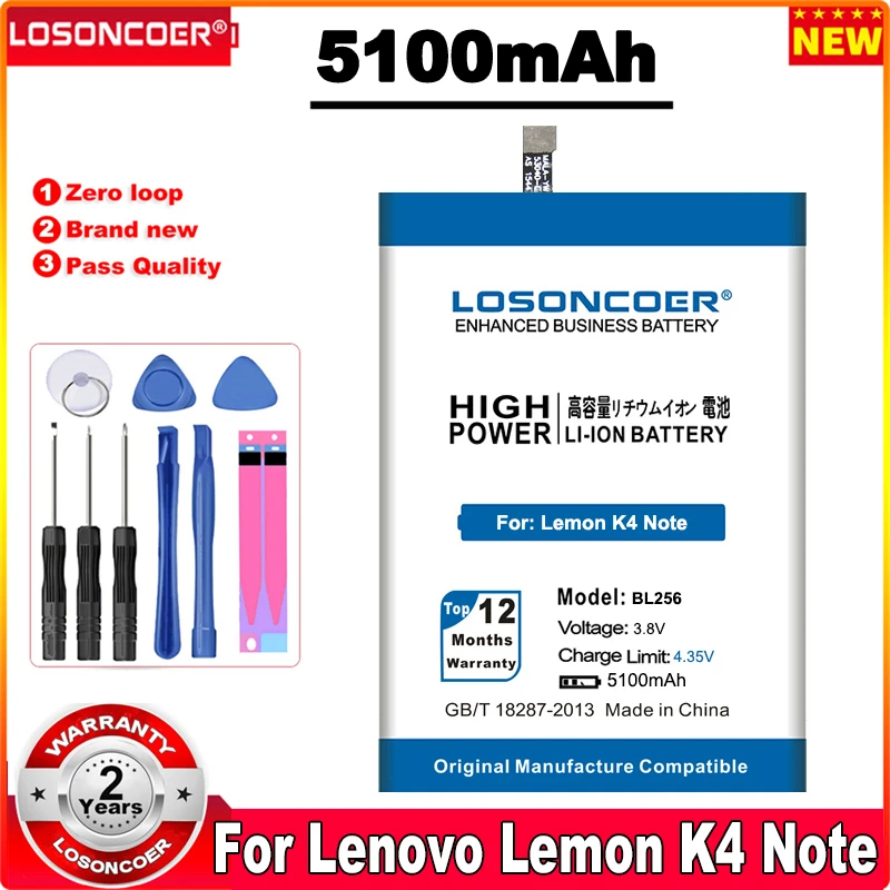 LOSONCOER 5100 мАч BL256 батарея для Lenovo Lemon K4 Note K4note / X3 Lite K51c78 / A7010 мобильный телефон