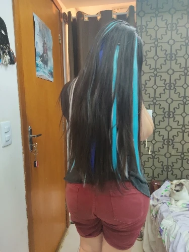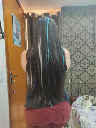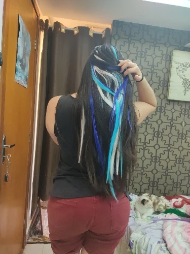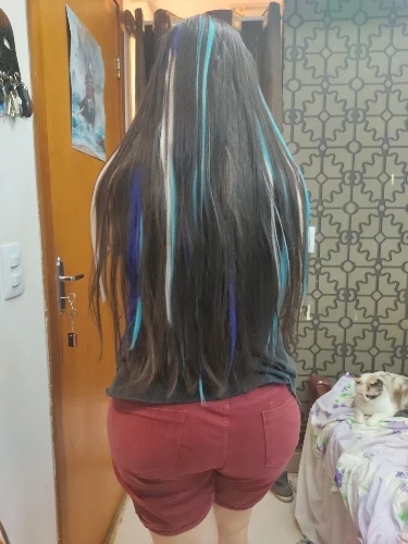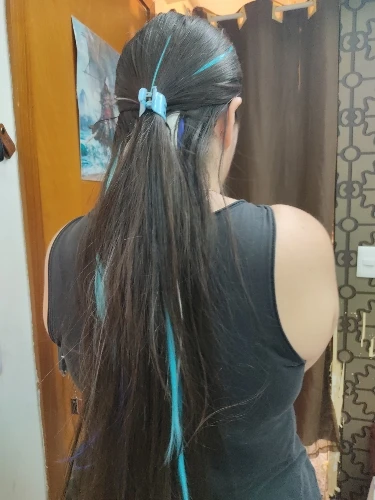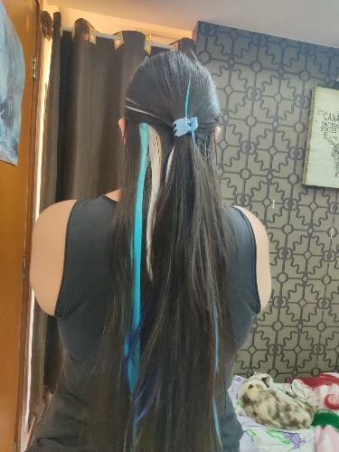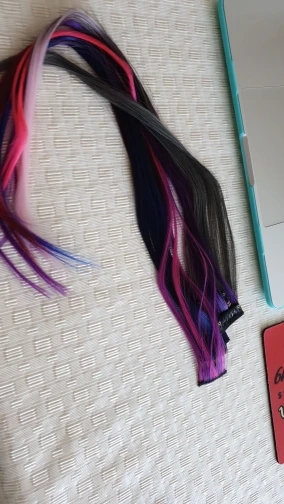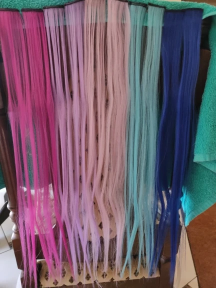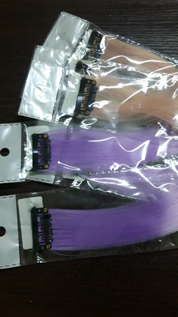 Яркие классные пряди! Не сразу поняли, как их прикалывать. У меня и дочки волосы по плечи, пряди оказались длинные, надо было заказать покороче.