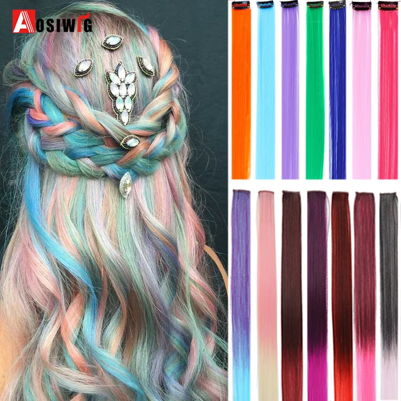 AOSI длинные прямые цветные синтетические пряди для наращивания волос с зажимом, для женщин и девочек