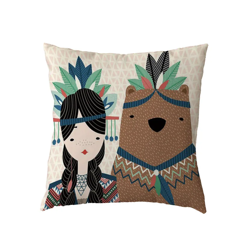 Креативный чехол для подушки в индийском стиле с изображением медведя, белый чехол для подушки с разноцветным геометрическим рисунком, домашний декор, полиэфирный персиковый чехол для подушкиХарактеристики: