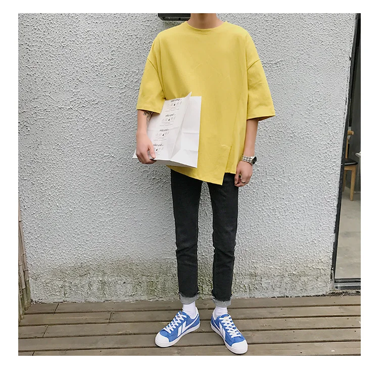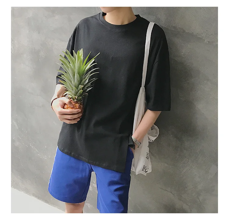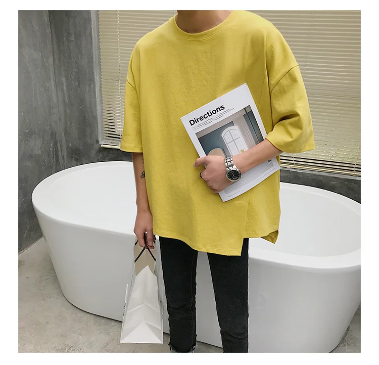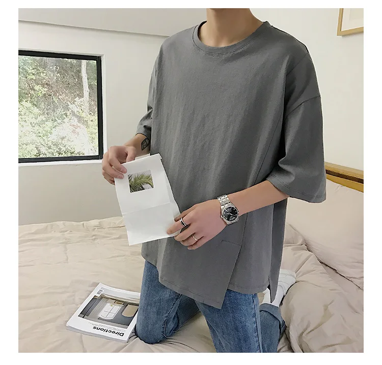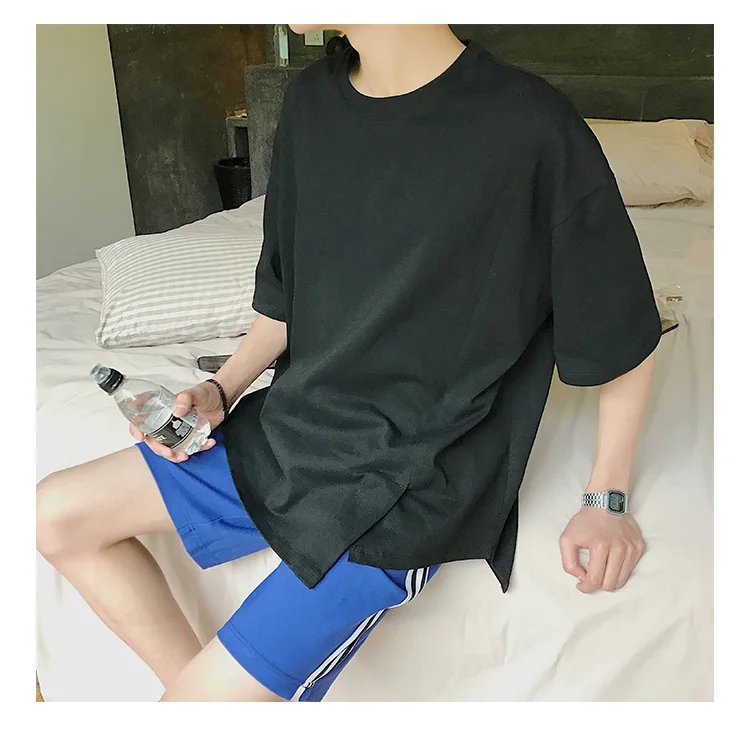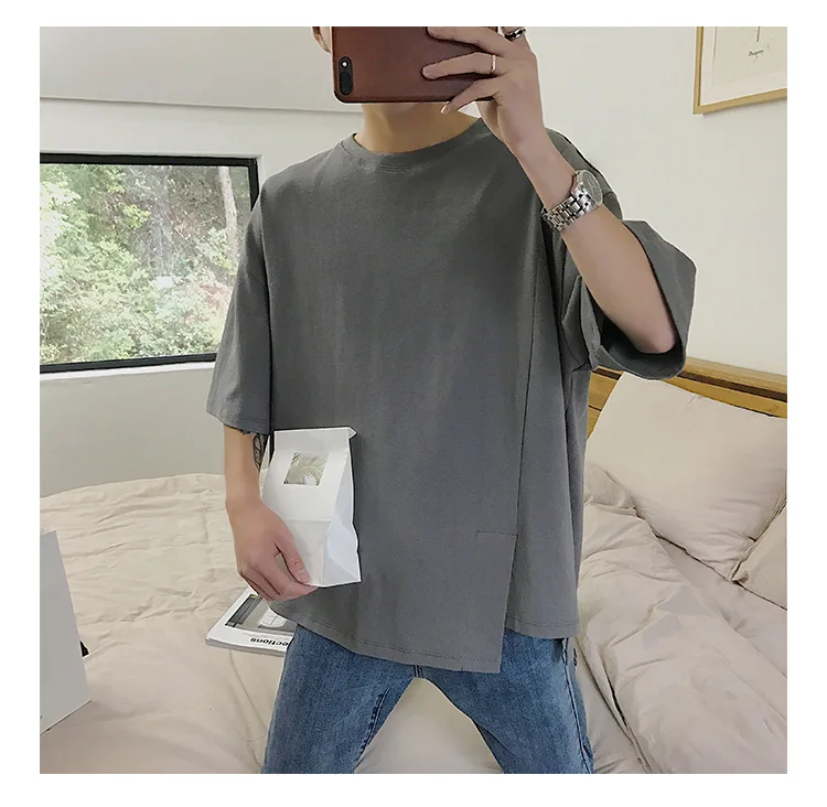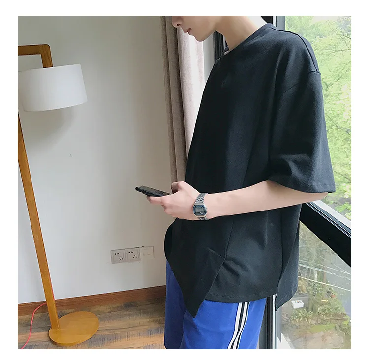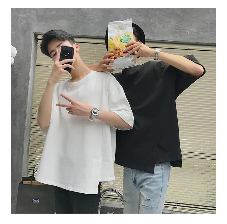 Футболка мужская оверсайз с круглым вырезом, модная тенниска в Корейском стиле, повседневная майка с коротким рукавом, Однотонная рубашка в стиле Харадзюку, 2021