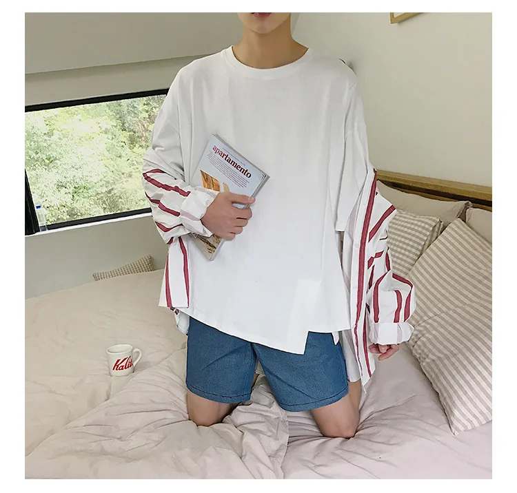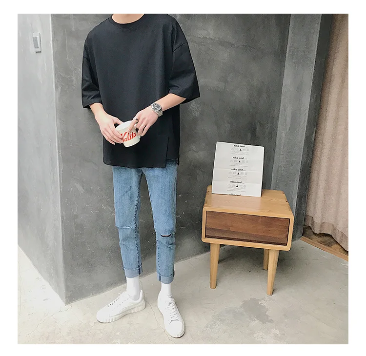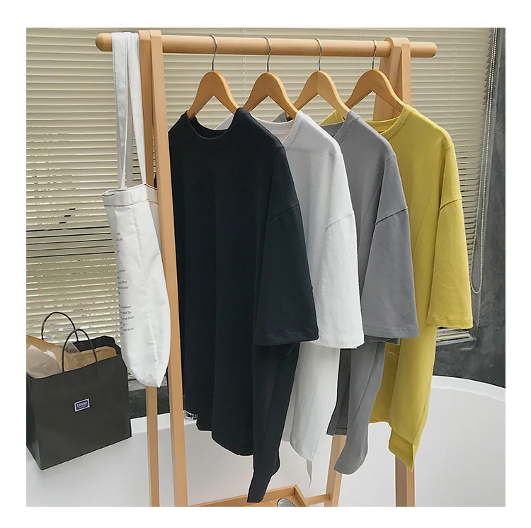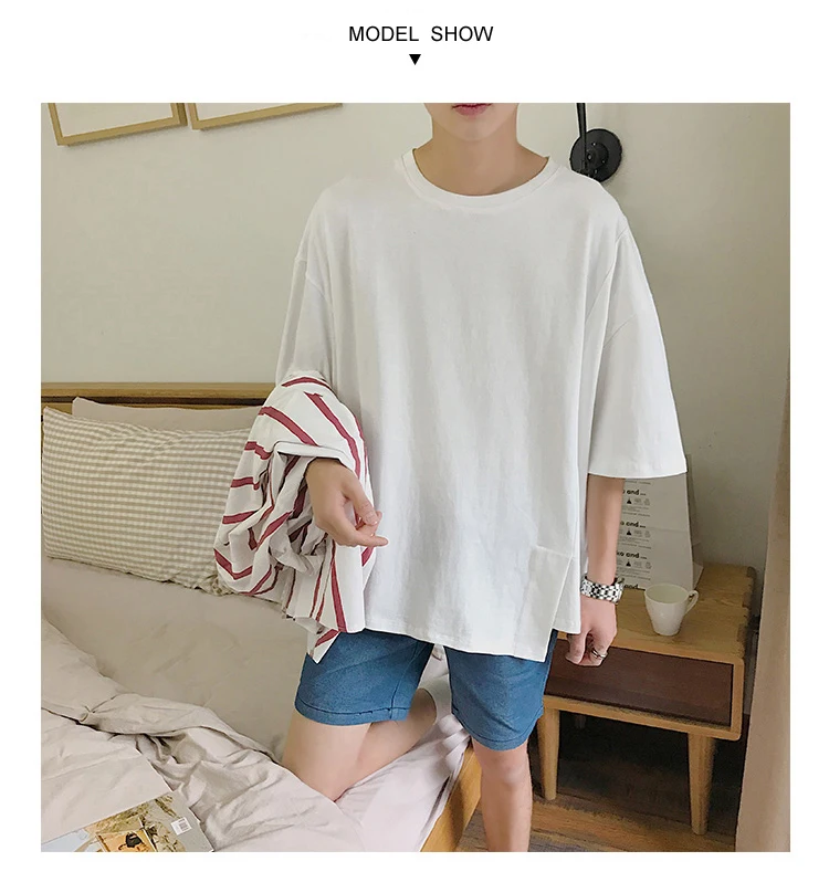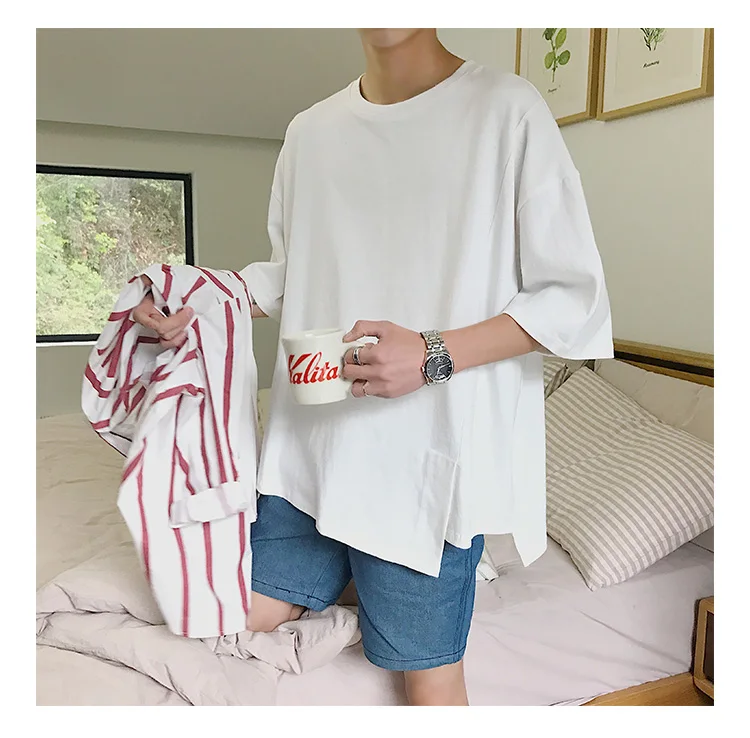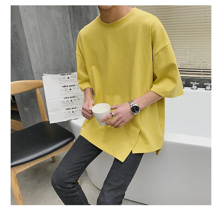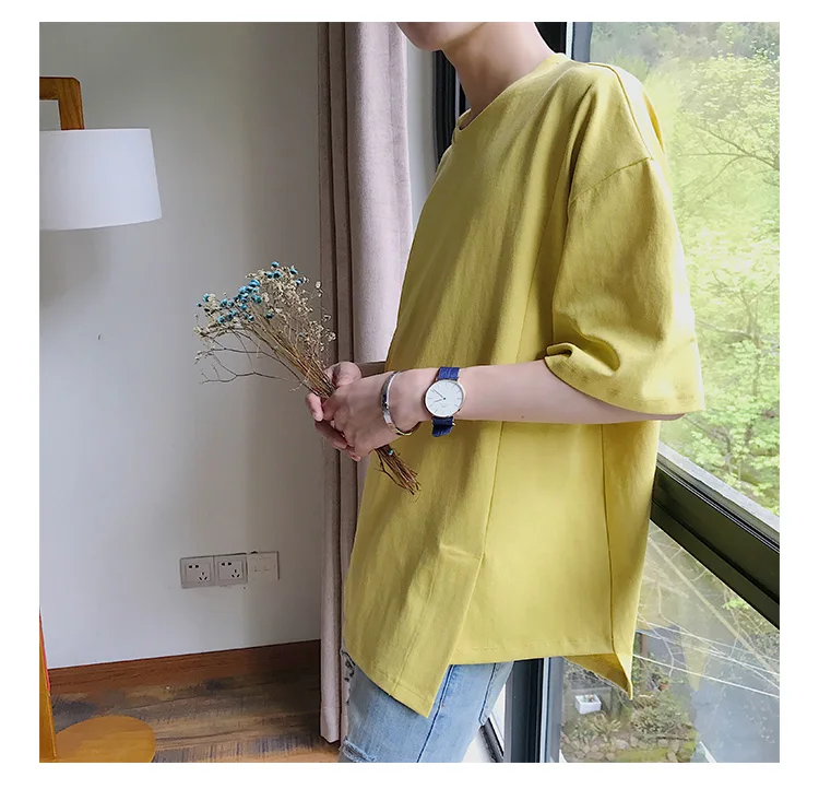 Футболка мужская оверсайз с круглым вырезом, модная тенниска в Корейском стиле, повседневная майка с коротким рукавом, Однотонная рубашка в стиле Харадзюку, 2021