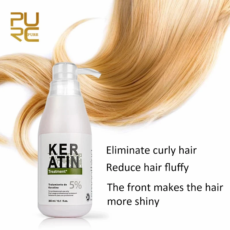 PURC Кератиновое выпрямление волос 5% формальдегид Кератиновое лечение 300 мл, ремонт поврежденных гладких завиваний Уход за волосами салонные продукты