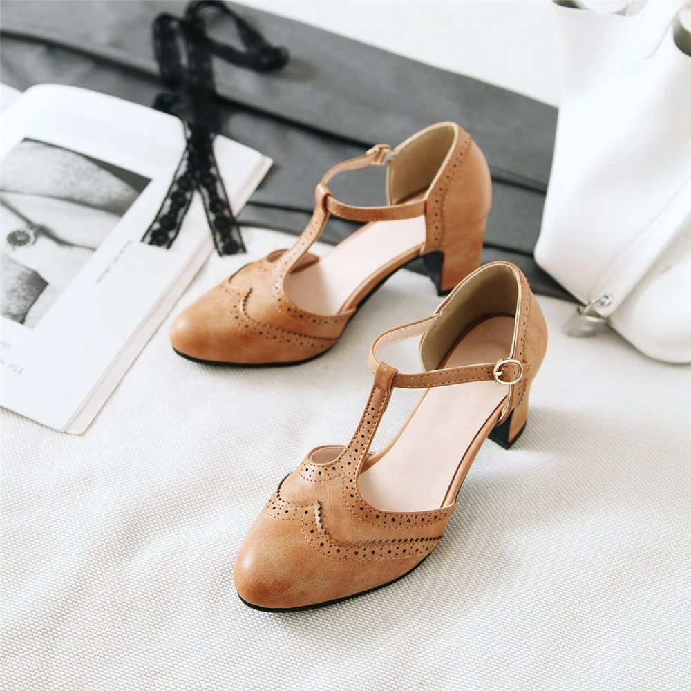 2021 винтажная женская обувь из искусственной кожи женские туфли-лодочки в римском стиле с острым носком и Т-образным ремешком с пряжкой размера плюс 32-43