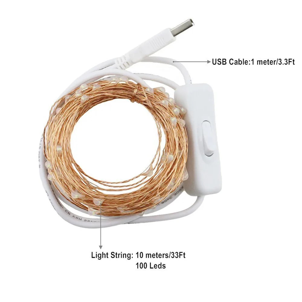 10 м 100 светодиодный s водонепроницаемый USB медный провод светодиодный светильник с выключателем вклвыкл праздничные уличные гирлянды для рождественской вечеринки
