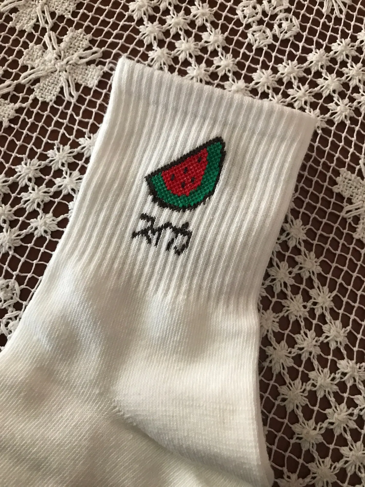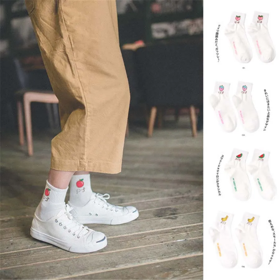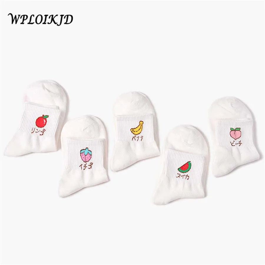 Милые художественные носки WPLOIKJD, мультяшная вышивка фруктов, персик, клубника, арбуз, банан, узор в Корейском стиле Харадзюку, забавные носки
