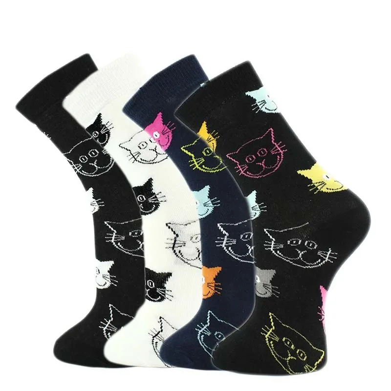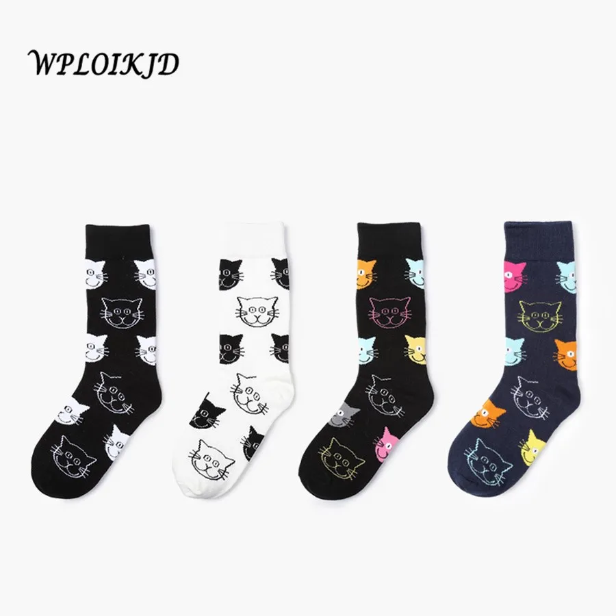 Женские хлопковые носки WPLOIKJD, 4 стиля, милые носки с мультяшным изображением кошки, милые женские забавные носки, модные носки унисекс без коробки