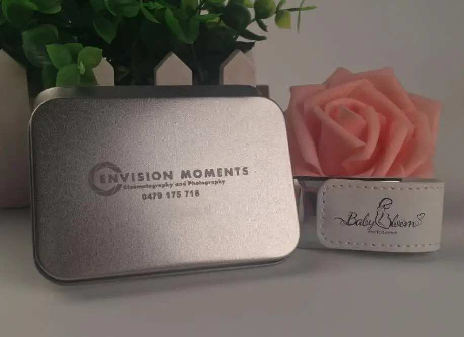 Новый индивидуальный логотип, белая кожа, свадебный подарок с металлической упаковкой