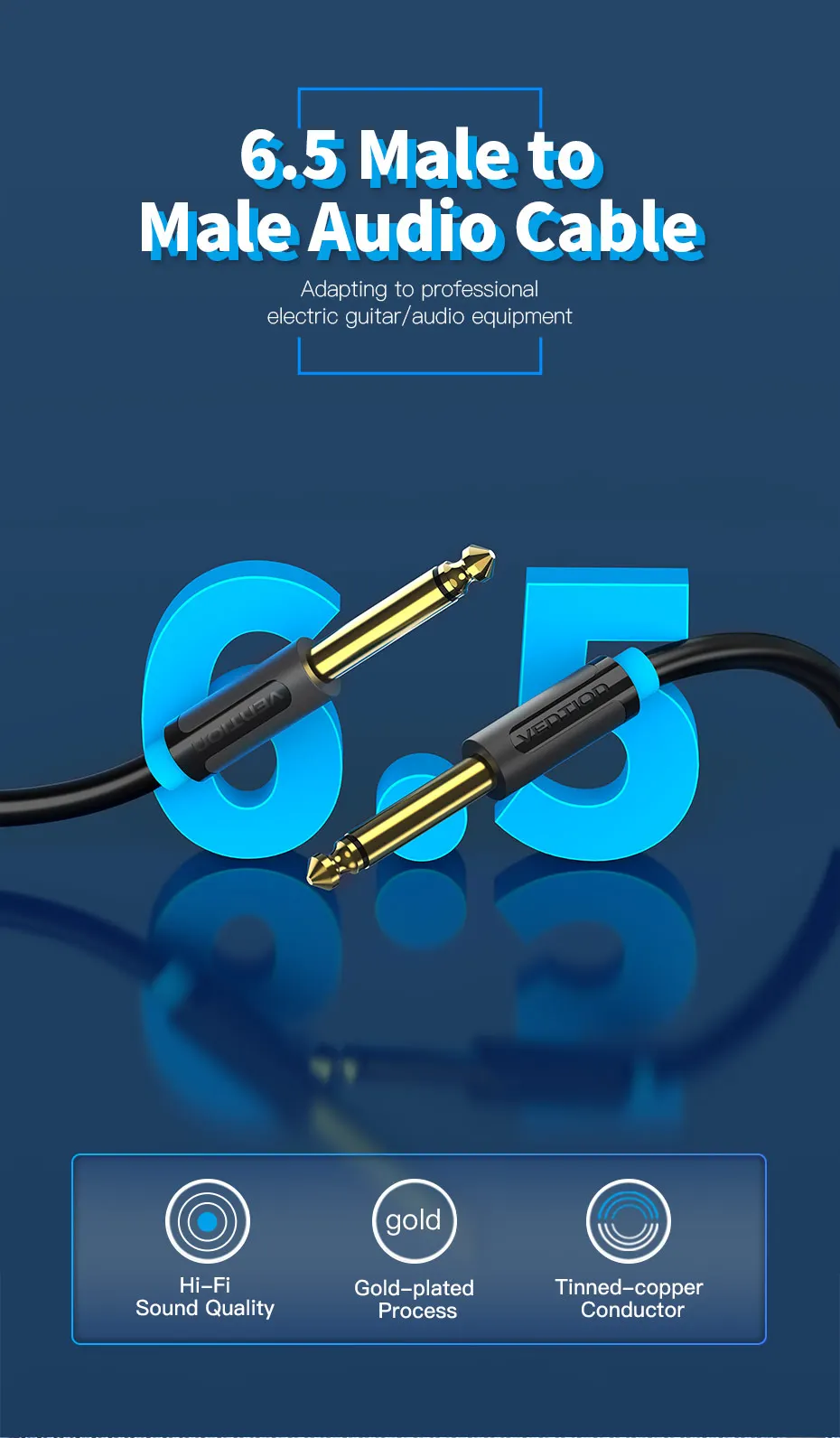 Аудиокабель Vention 6,5 мм с разъемом Jack на Jack позолоченный 2 м 3 м 5 м Aux кабель для гитарного микшерного усилителя Aux Кабо
