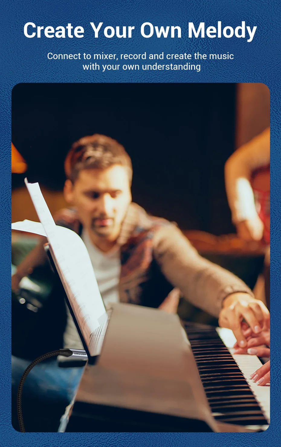 Аудиокабель Vention Aux, разъем 6,5-6,5 мм, аудиокабель 6,5 мм для стереогитары, микшера, усилителя, динамика