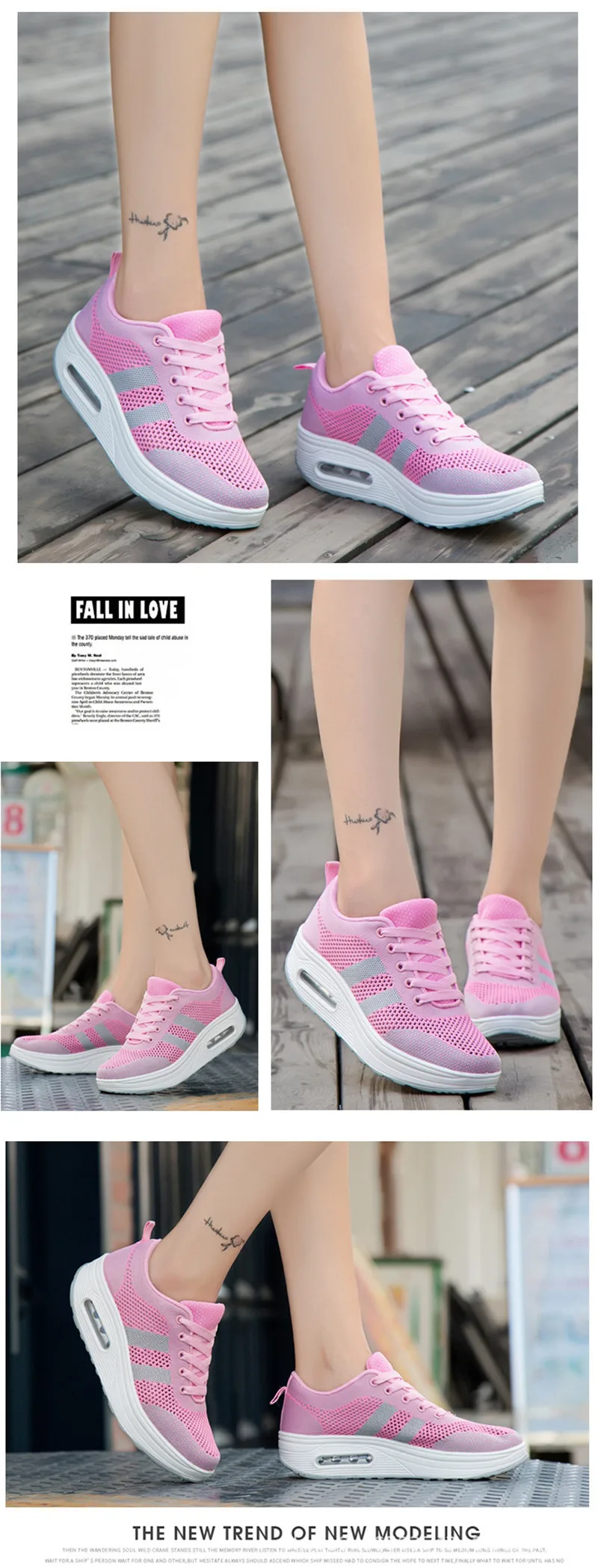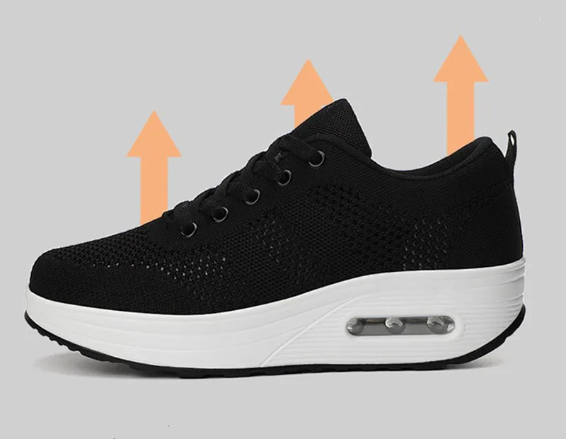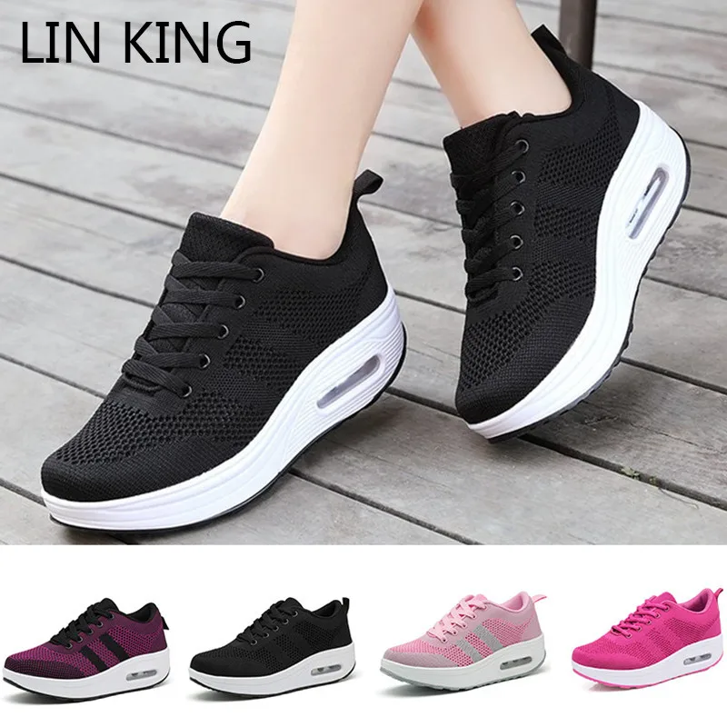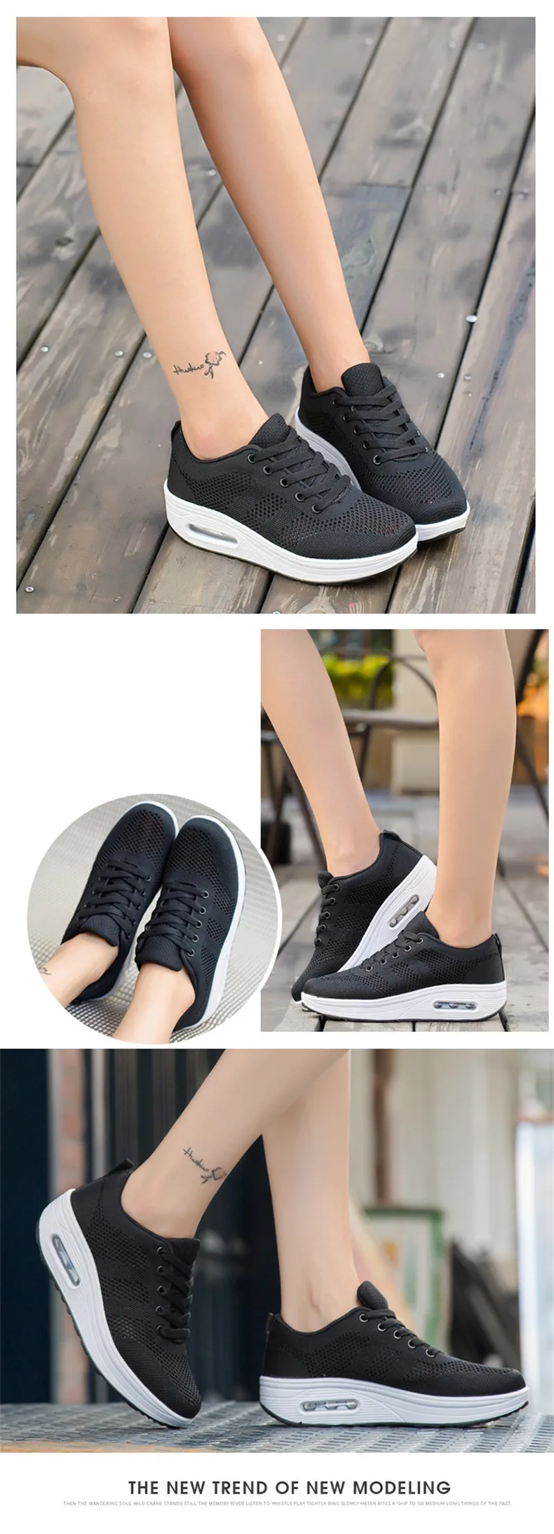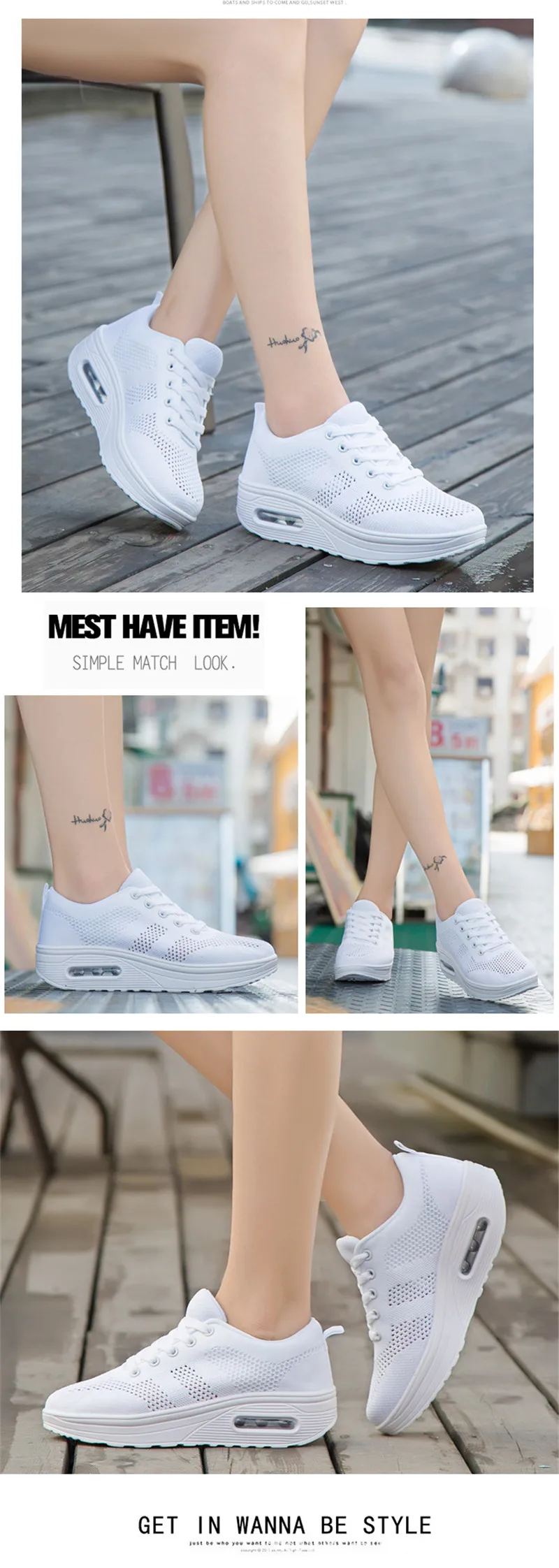 кроссовки женские кеды женские туфли женские туфли на платформе обувь женская Женские кроссовки на танкетке, дышащие повседневные спортивные туфли с сетчатым верхом, на шнуровке, на платформе, для увеличения роста
