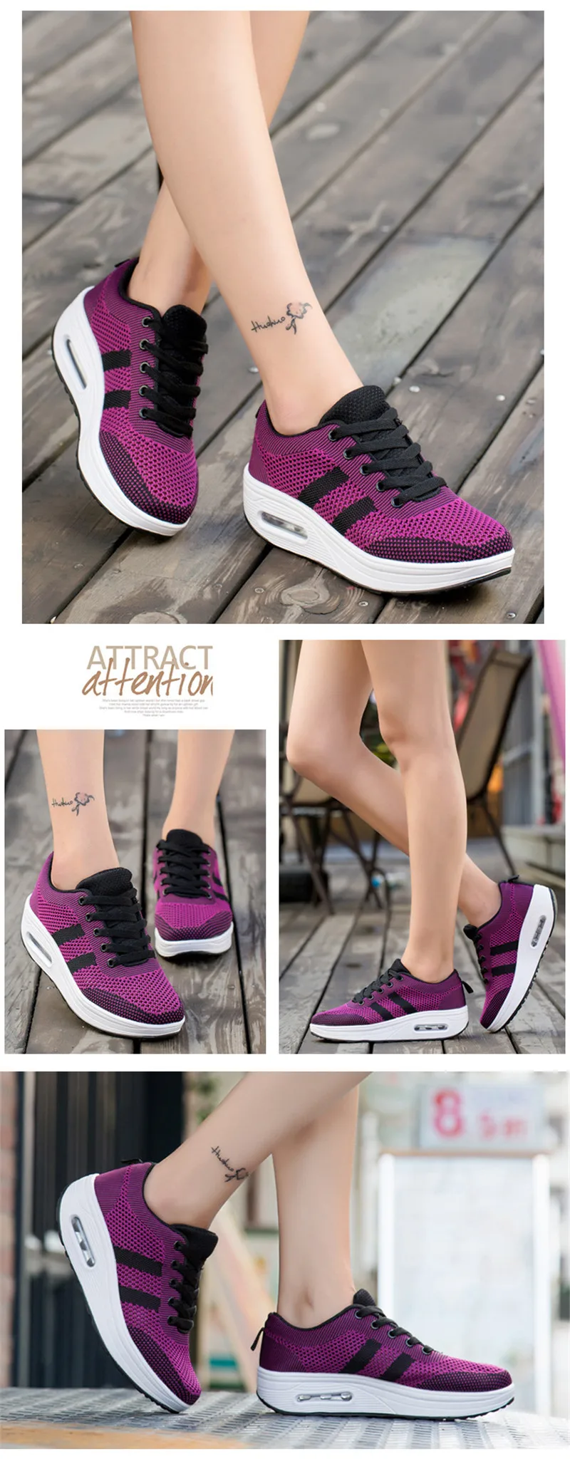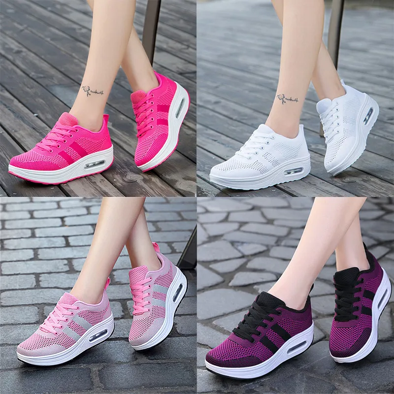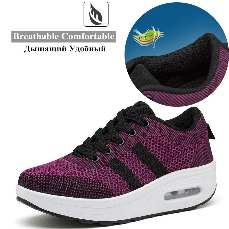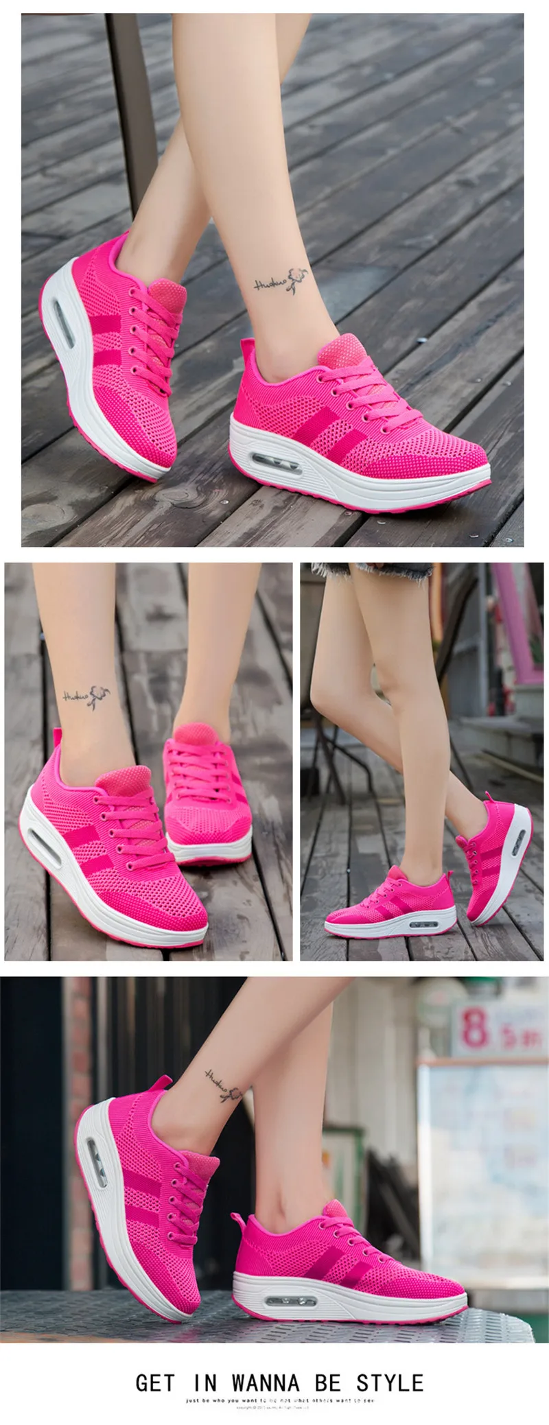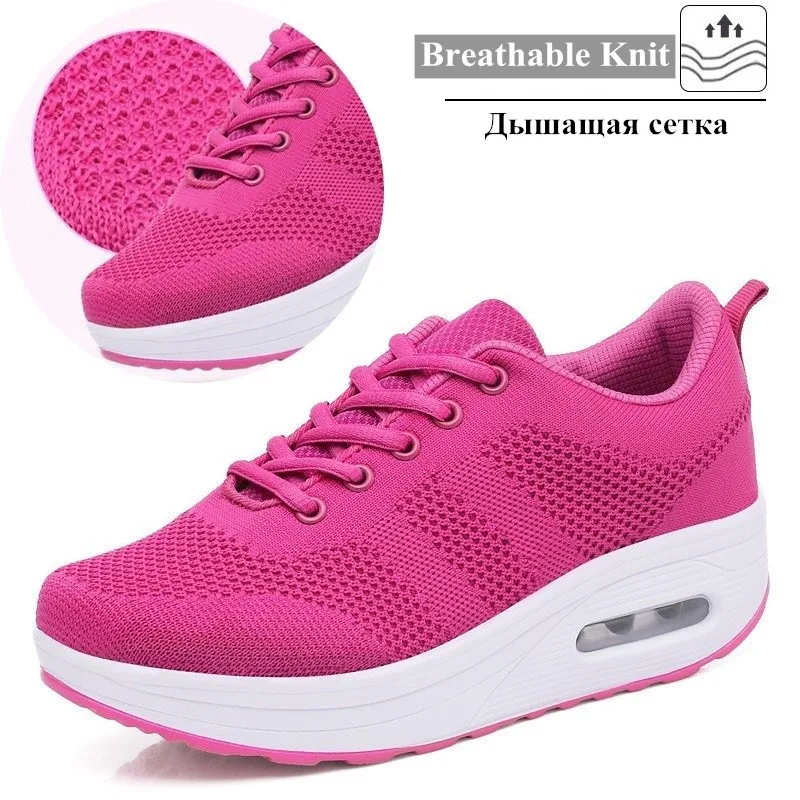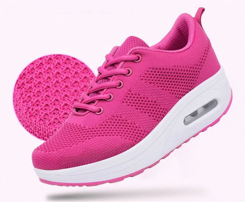 кроссовки женские кеды женские туфли женские туфли на платформе обувь женская Женские кроссовки на танкетке, дышащие повседневные спортивные туфли с сетчатым верхом, на шнуровке, на платформе, для увеличения роста
