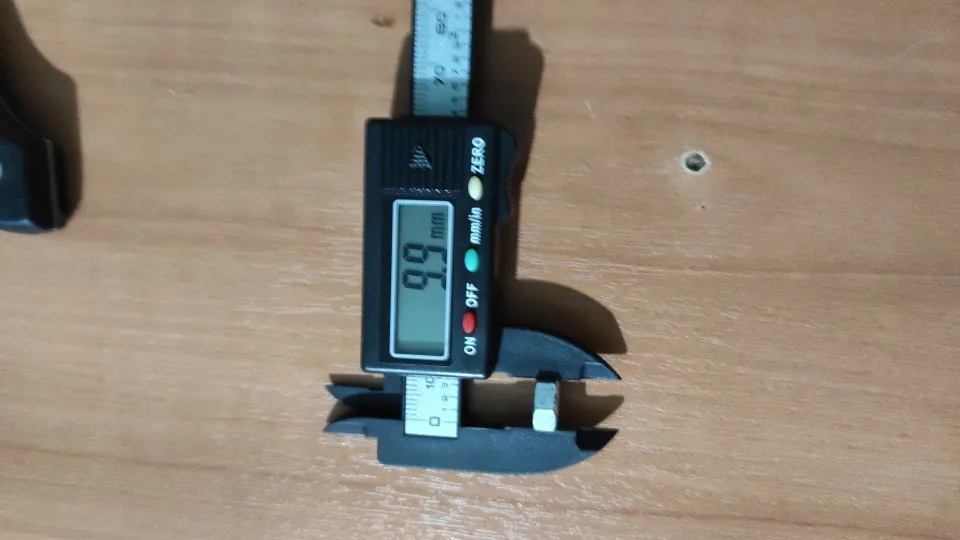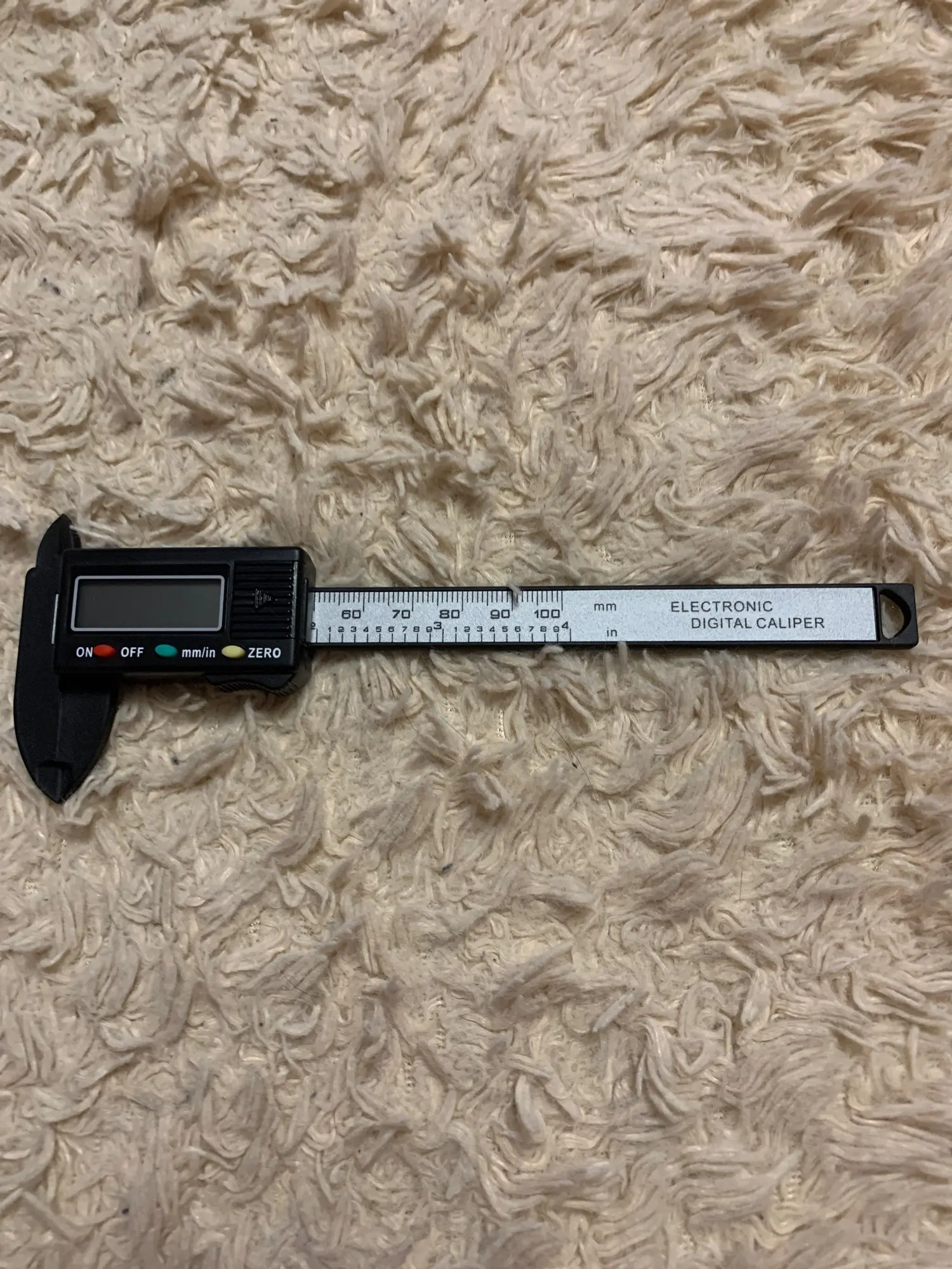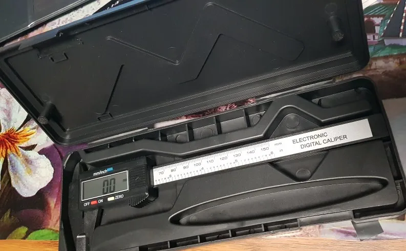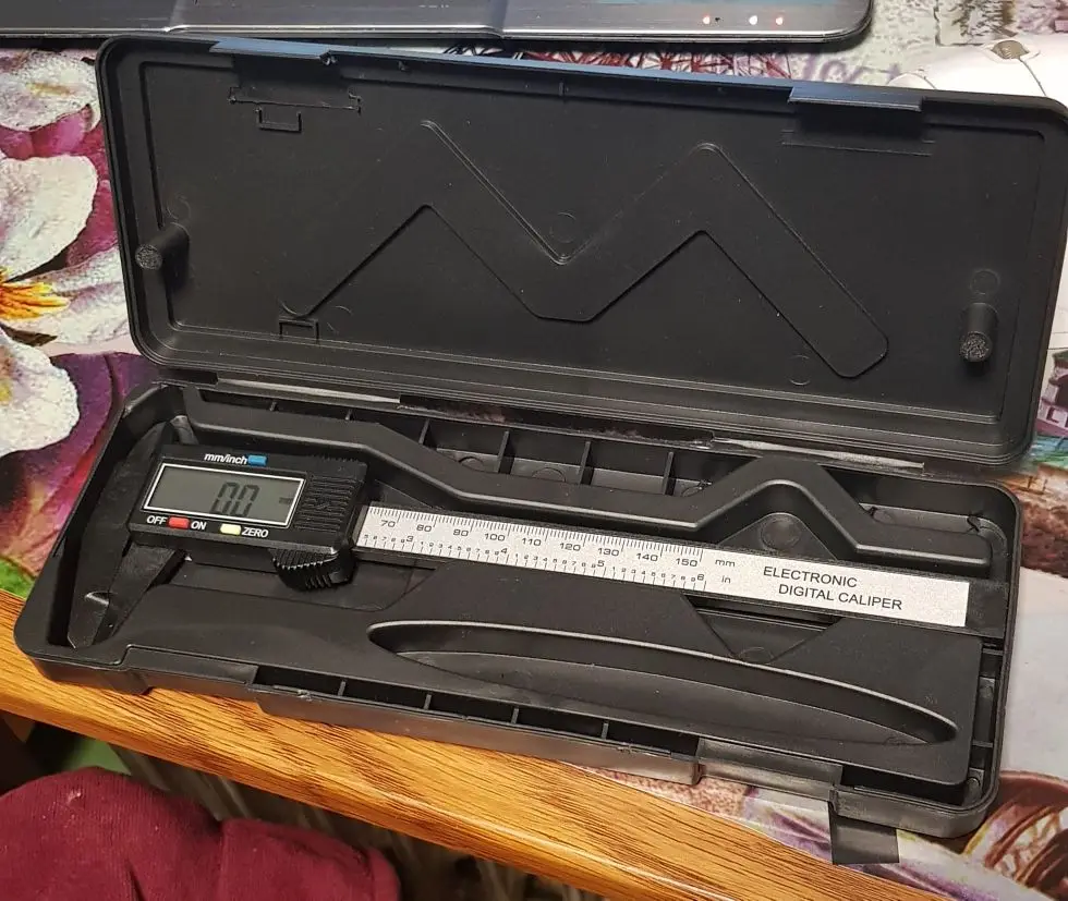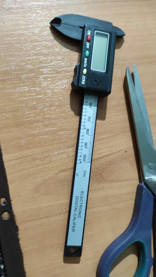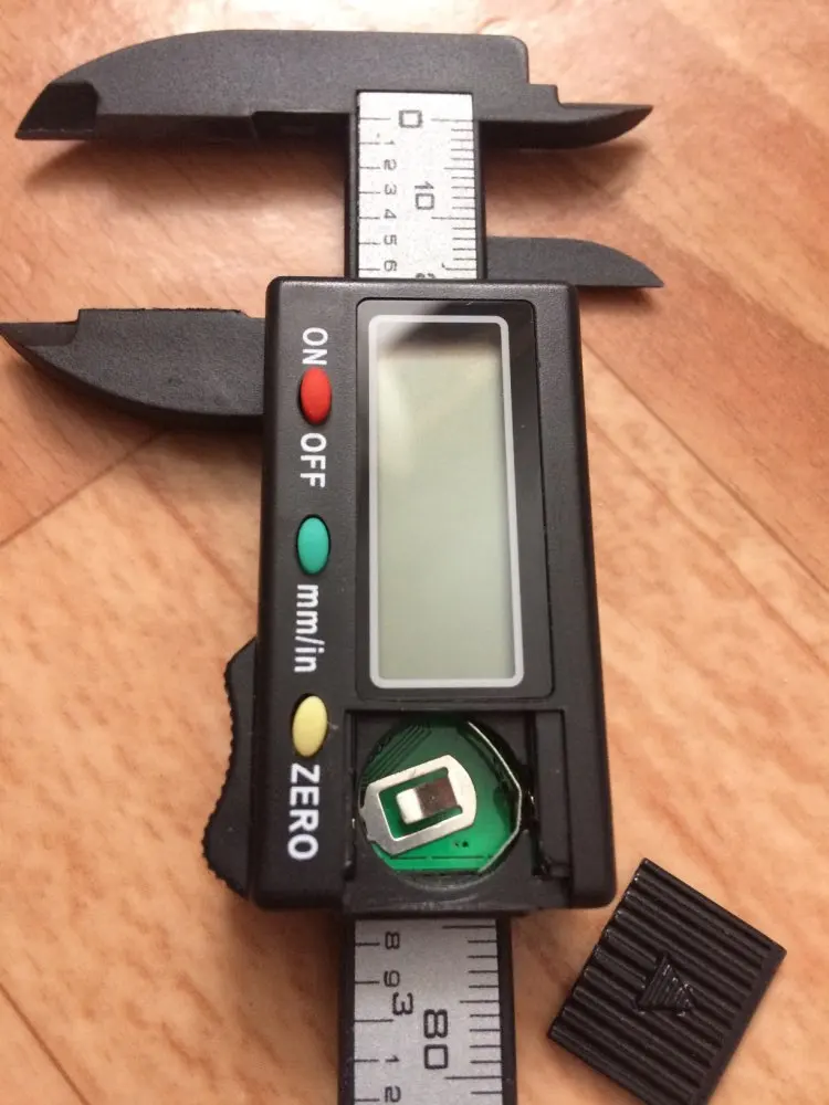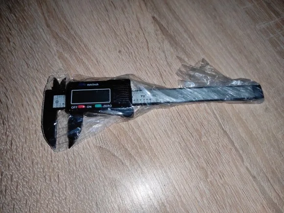 пластиковый штангенциркуль, батареек такого типа у меня не нашлось, выглядит хлипковато, но нужно вставить батарейки, посмотрим