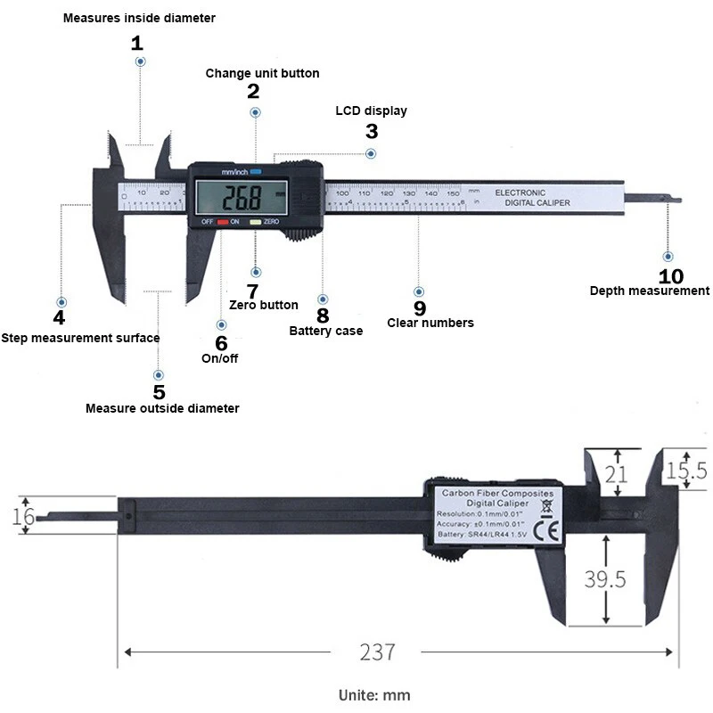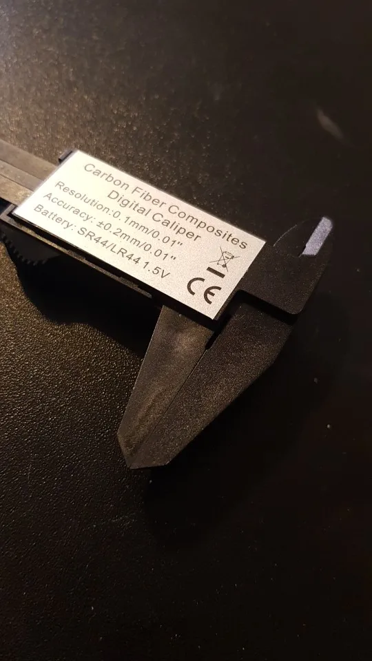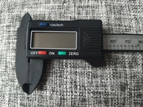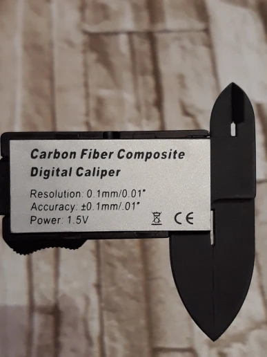 пластик хлипенький, уж точно не углеволокно, точность поверить нечем. Как подручный измеритель для мелочей сгодится. Нет батарейки это минус и не указано какая нужна.