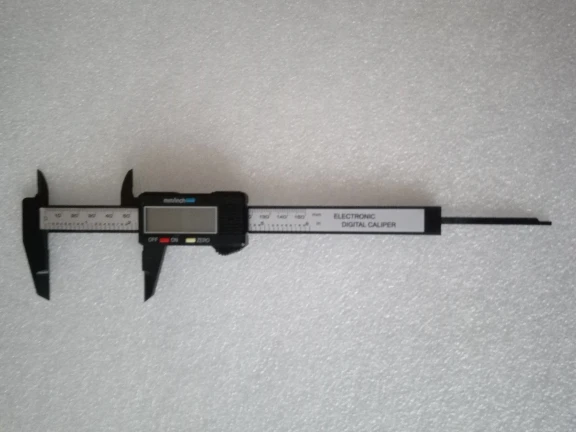 Заказала 11.11, получила 27.01, уже и не надеялась, но пришёл. Аккуратный, твёрдый пластик без дефектов литья. Для бытовых нужд - идеально. Из всех штангелей до 300 руб, что я видела, самый лучший. Батарейку LR44 купила в киоске Союзпечать, 12 руб/шт. Не считая невыносимо долгой доставки, все отлично!