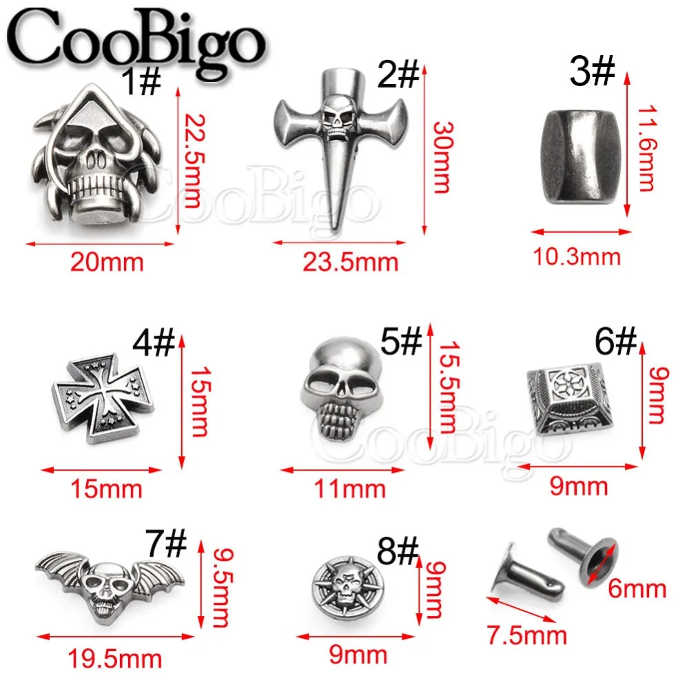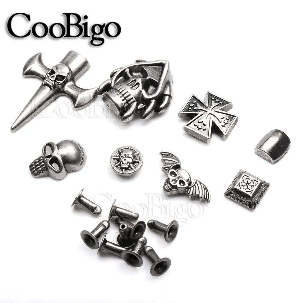 5 компл. Металлические заклепки в виде черепа шипы в стиле панк-рок DIY кожаный браслет для рукоделия Одежда Ткань сумка для обуви аксессуары для воротника для домашних животных
