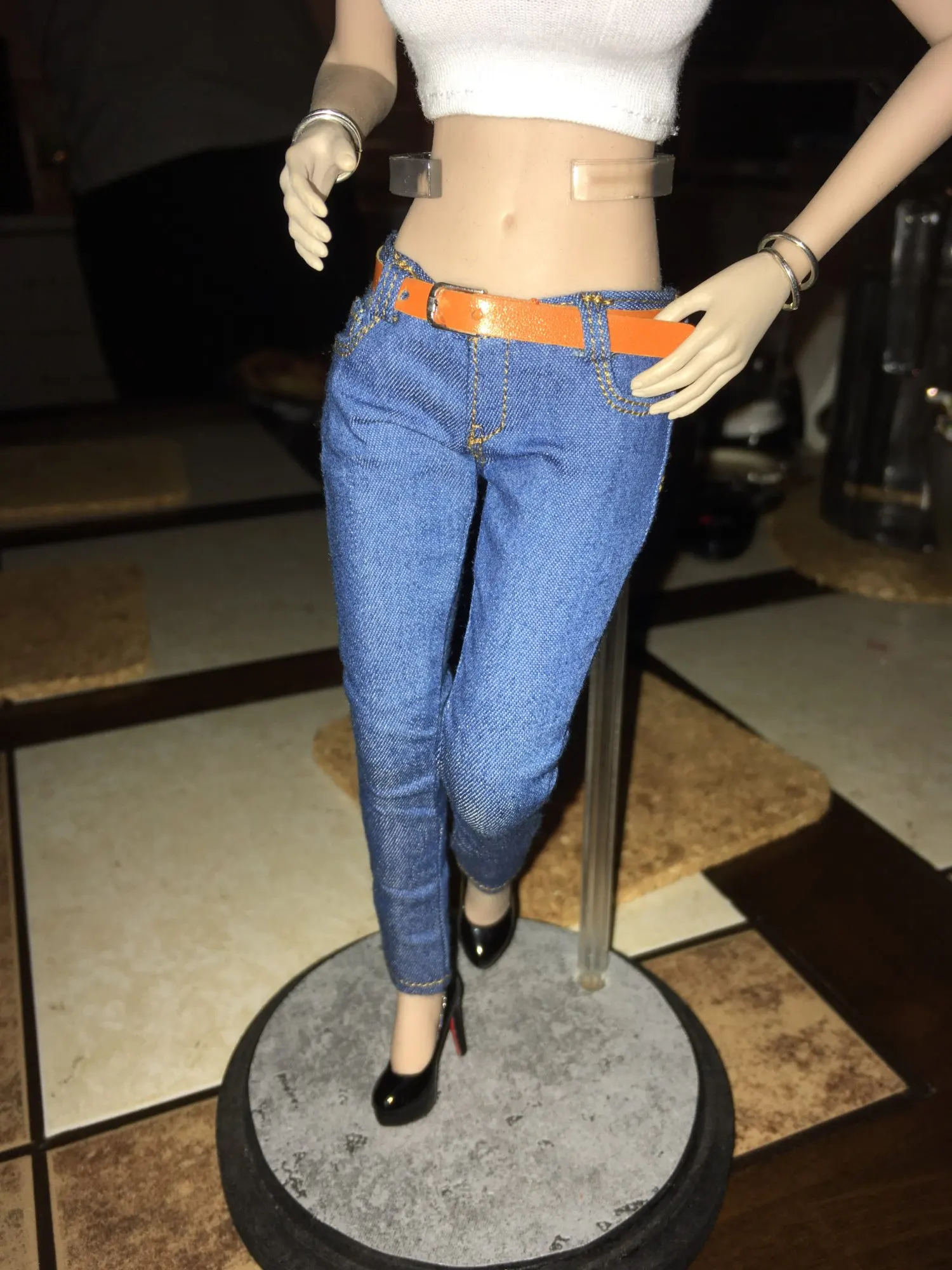 Женская одежда в масштабе 16, узкие женские джинсы, облегающие джинсы CF001 ABC для куклы 12 дюймов PH Jiaoudol, боди, аксессуары для фигурок