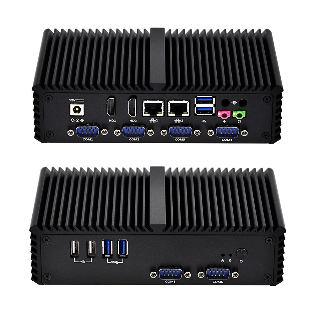 Qotom мини-ПК Q300P процессор Celeron, двойная Lan, 6 USB 6 COM RS232 RS485 безвентиляторный X86 киоск POS-компьютер