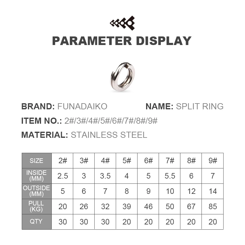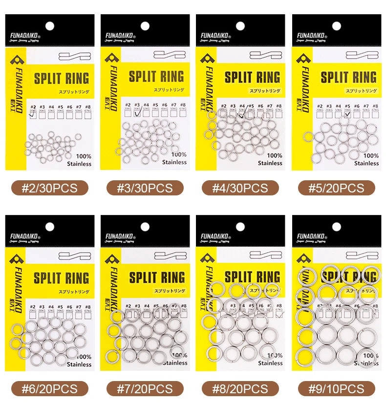 Рыболовные сплит-кольца FUNADAIKO, плоские, из нержавеющей стали, с двойным кольцом