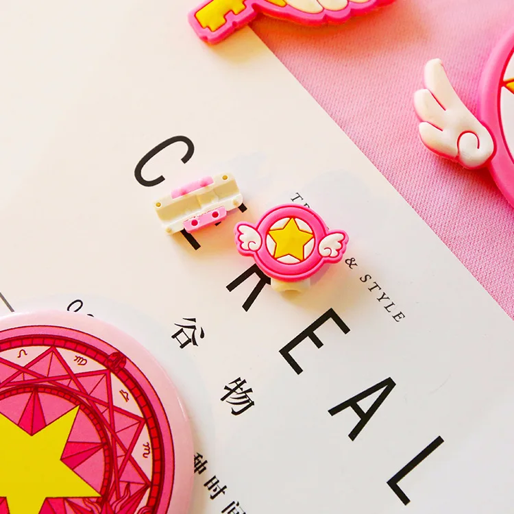 1 шт. Аниме Фигурка Card Captor Sakura линия наушника: защитная ячеистая и звездами, принт в виде крыльев, мини-кабель передачи данных Сакура клип новый