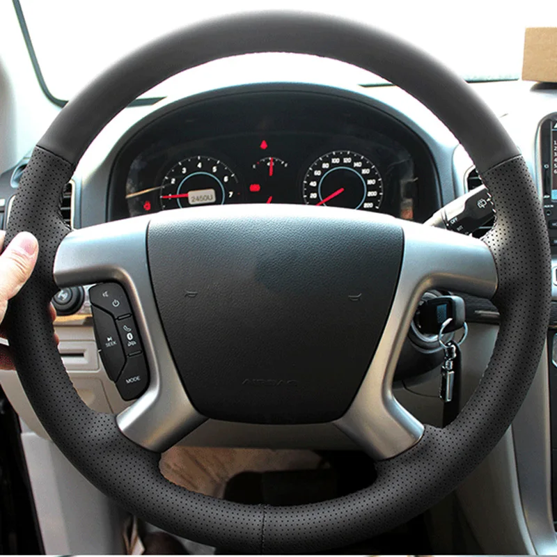 GNUPME качество Черный Artifici кожаный чехол рулевого колеса автомобиля для Chevrolet Captiva Epica специальная ручная прошивка Чехлы для рулевого колеса