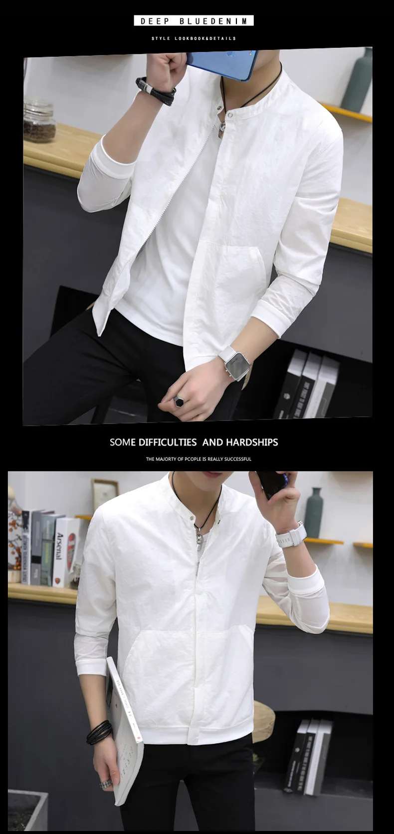 Куртка мужская Тонкая Солнцезащитная на молнии, приталенная, с круглым вырезом и планкой, однотонная Повседневная Верхняя одежда для отдыха, на лето