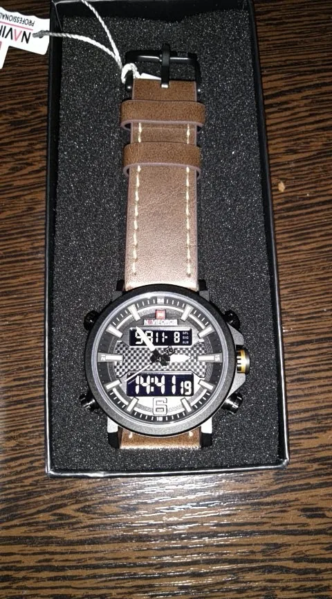 Часы прибыли очень быстро, хорошо упакованы, часы чувствуют себя хорошо, и ремешок кажется настоящей кожей. Цифровой часовой свет очень тусклый, мне это не нравится, он выглядит не очень хорошо, этот момент должен быть улучшен.