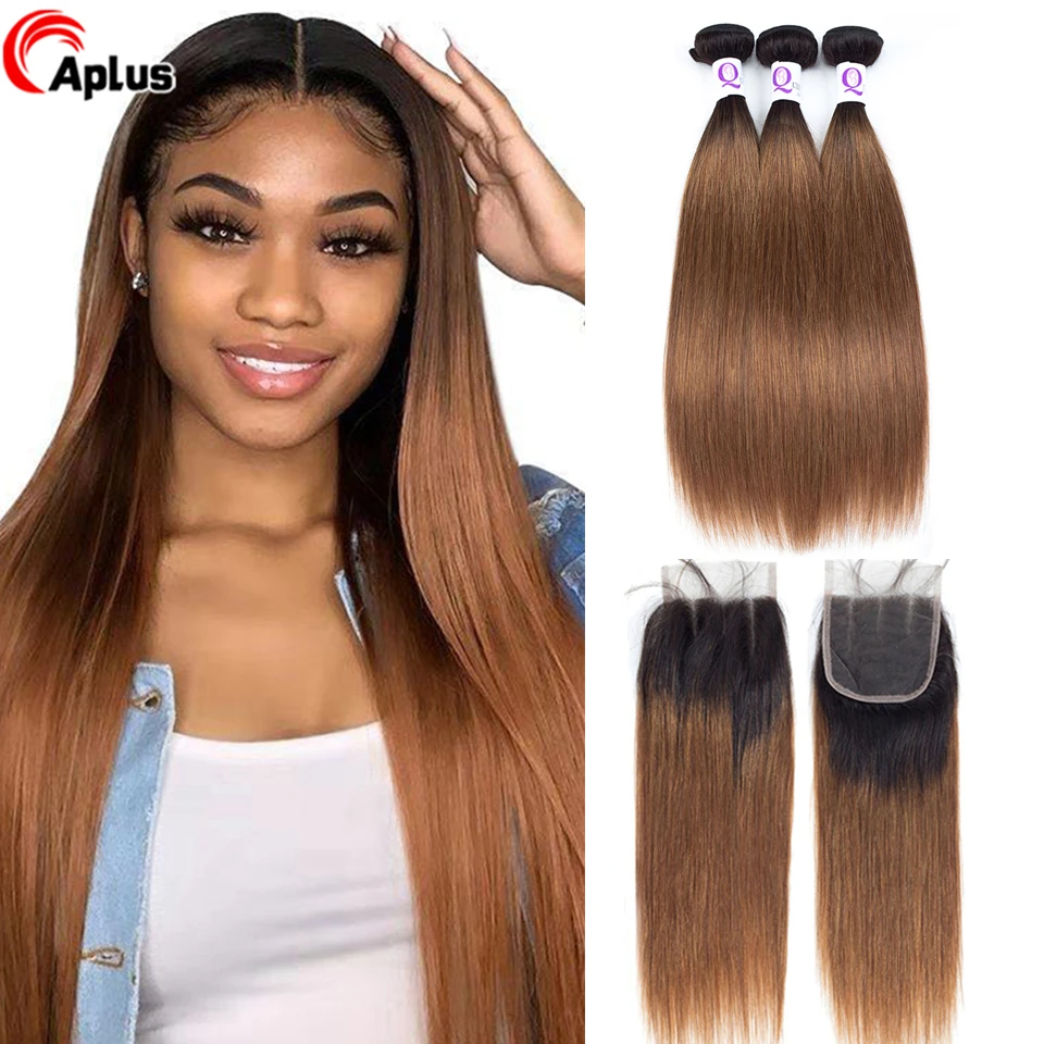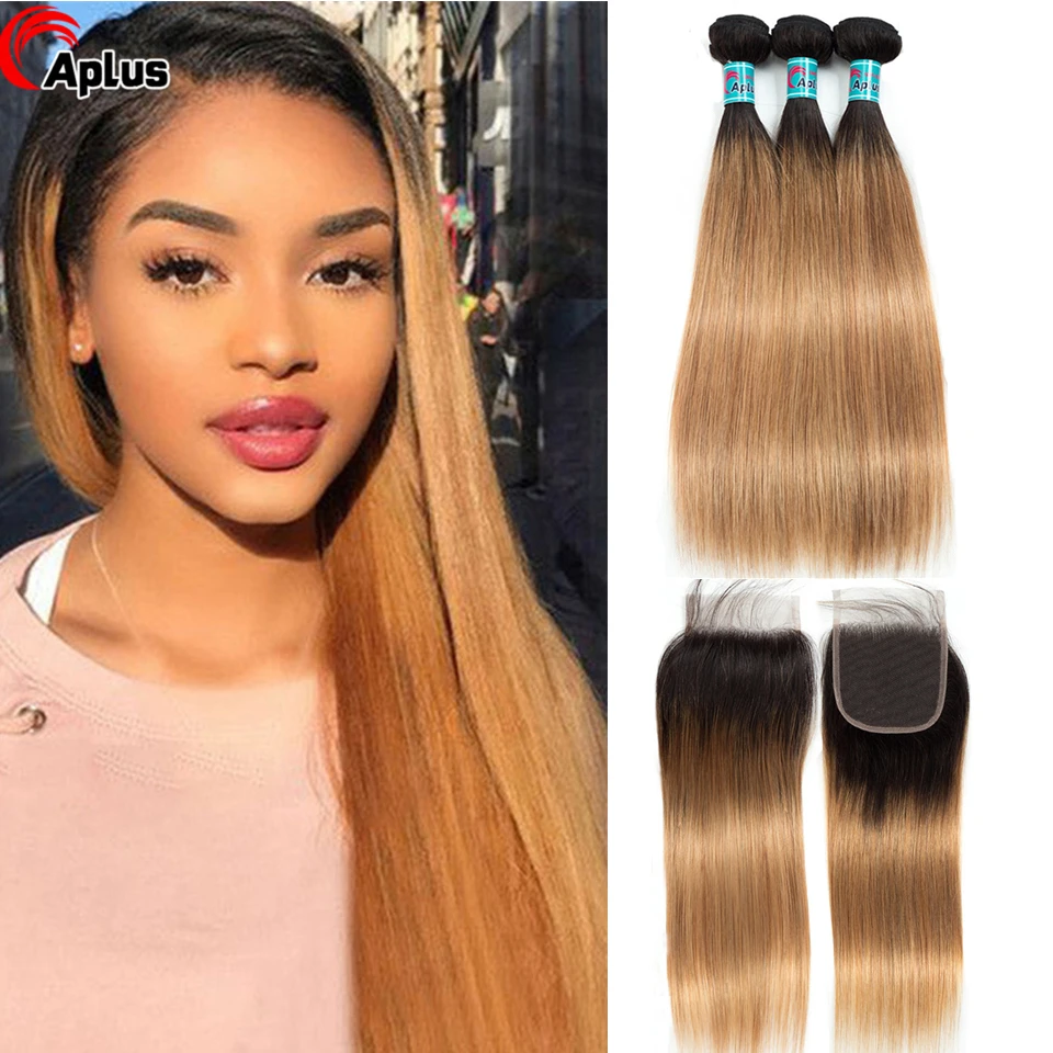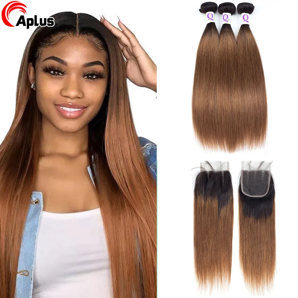 Hair StylePeruvian Ombre Straight Bundles With Closure