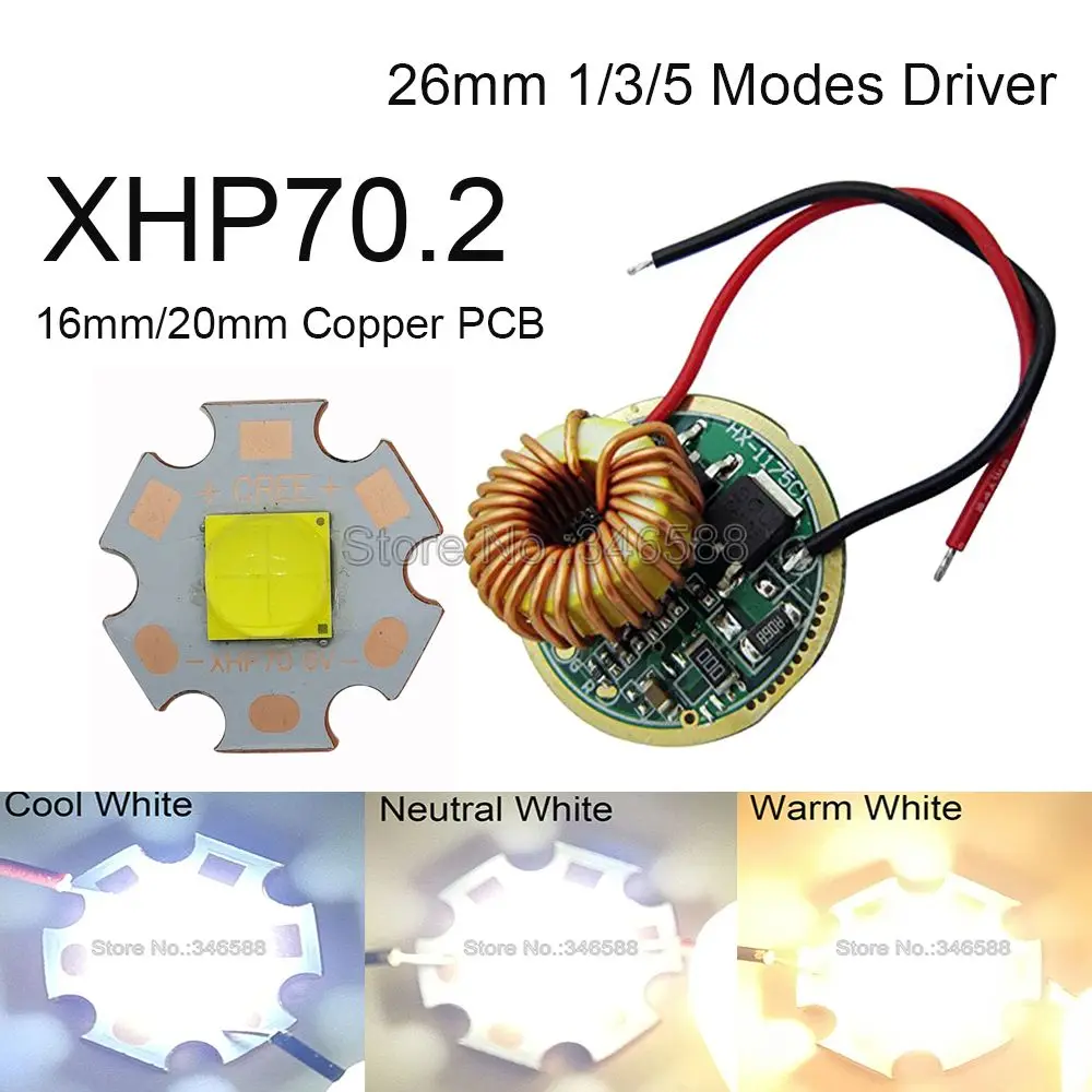 Cree XHP70.2 6 в холодный белыйнейтральный белыйтеплый белый светодиодный излучатель 16 мм20 мм медная ПП + 26 мм 1 режим5 режимов драйвер