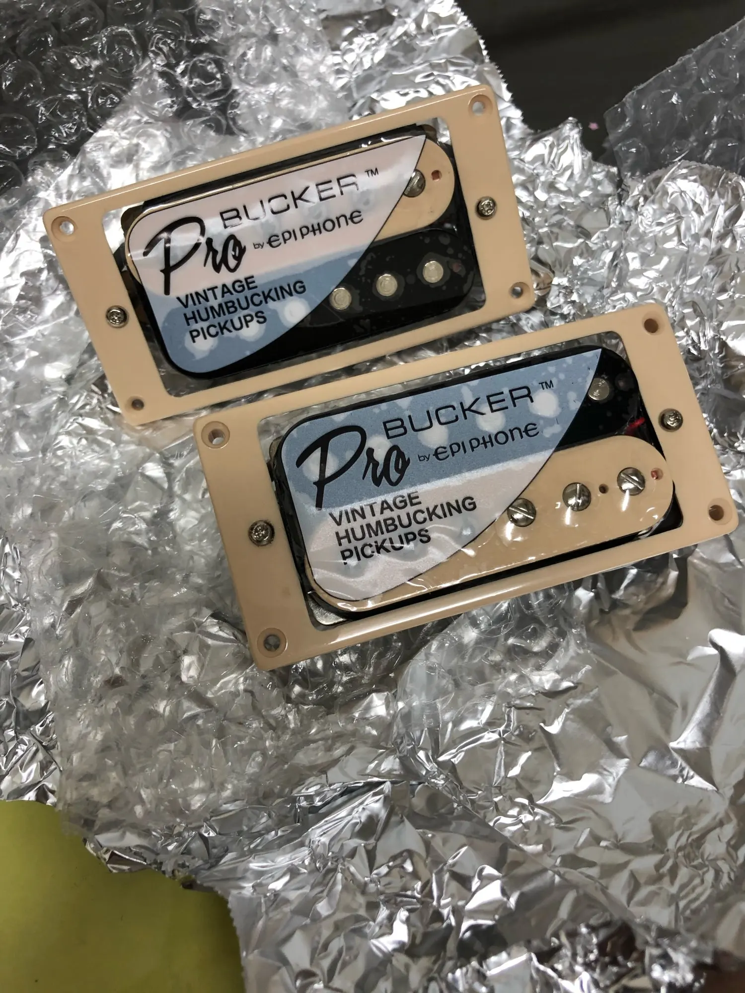 Отлично, сначала упаковка, микрофоны были сложены в алюминиевую лист, затем в пузырчатую сумку, затем снова в 2 других, затем в пластиковом пакете с доставкой, класс! Микрофоны имеют серьезный дизайн, с логотипом EPIPHONE, проводка идеально подходит с «pro» соединительной оболочкой и настоящими винтами регулировки независимых от звука струн! Очевидно, что звук остается, я вернусь к вам во время сборки и тестирования! There is no Reason That it doesn't Sound! И Фантастическая цена .... нет риска... будем серьезно, только звук получен!