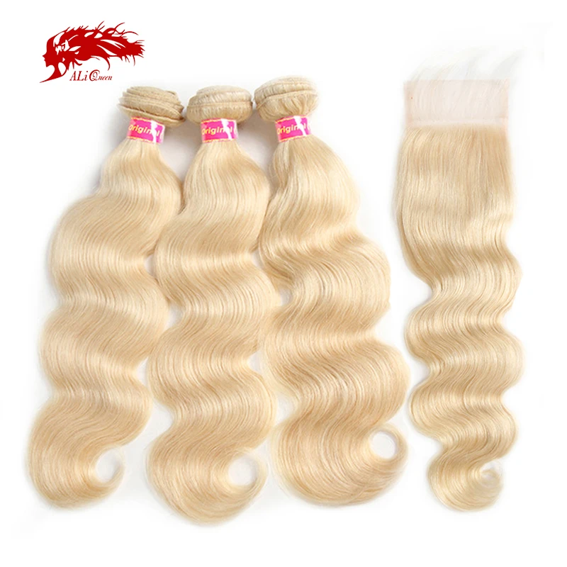 Пряди волос Блонд Ali Queen 613 с застежкой, бразильские волнистые человеческие волосы Реми, пучки с фронтальной свободной частью, плотность 130%