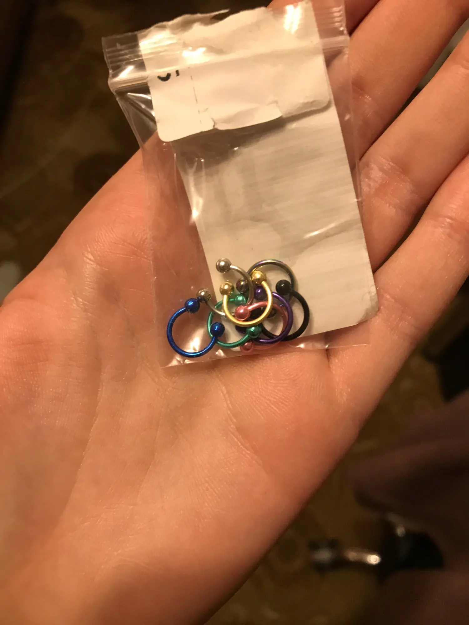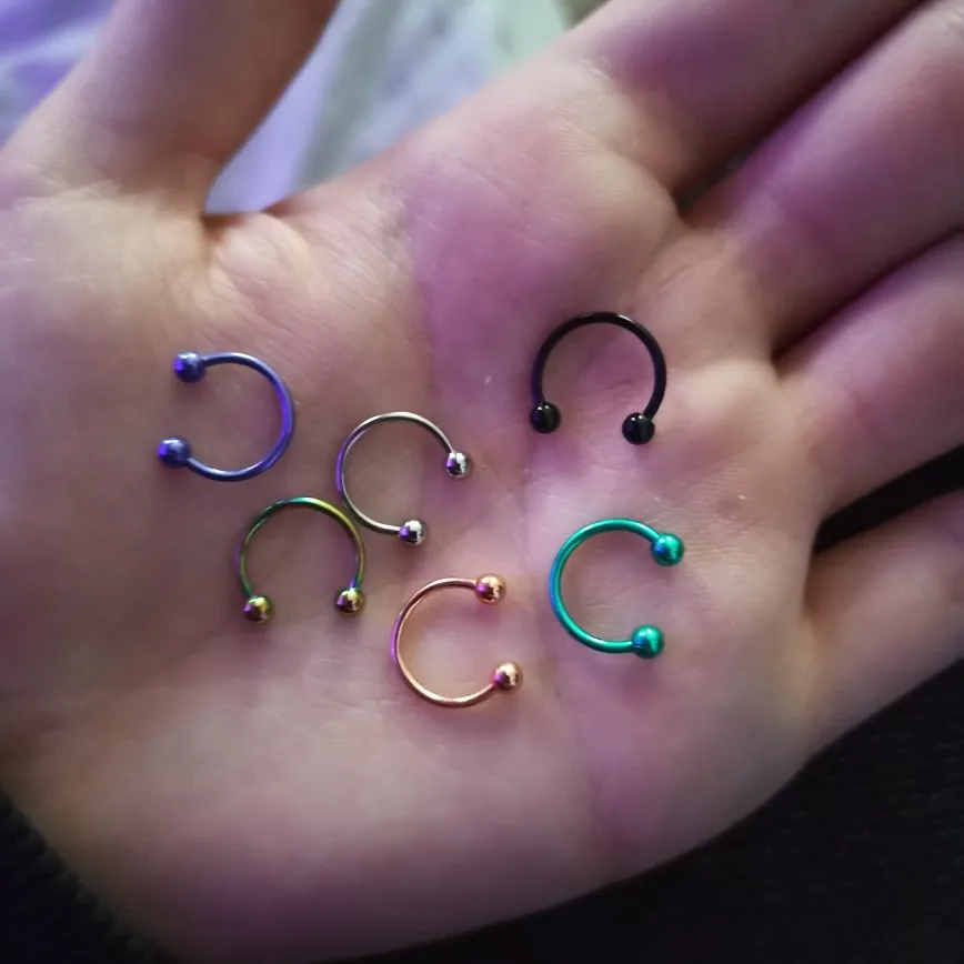 пришли в Уфу за 2 недели, очень быстро я немного ошибся со своим размером септума, поэтому я буду использовать только шарики от них :( краска со временем облазиет, в свежий прокол лучше не вставлять, яркие цвета!