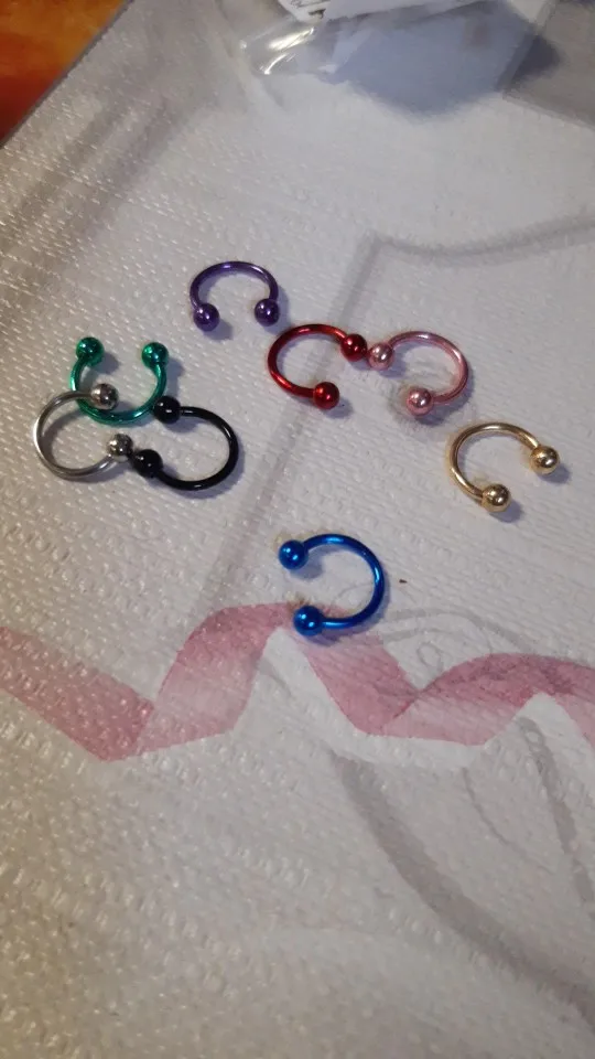 8 шт.лот, цветные стальные кольца для перегородки носа, пирсинг для ушей, ювелирное изделие, 3 размера, 6810 мм