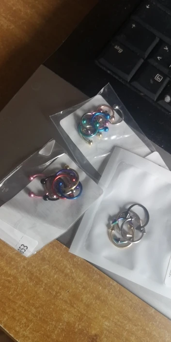 Todos pegados y súper gordos la barra gordisima pirsing que no merece la pena comprar Una real MIERD son falsos