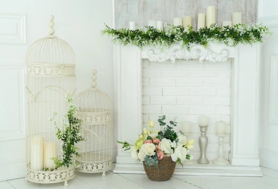 Серая каминная свеча Laeacco, корзина с цветами, венок, клетка, Фотофон для детского портрета, Фотофон, фотосессия Фотостудия